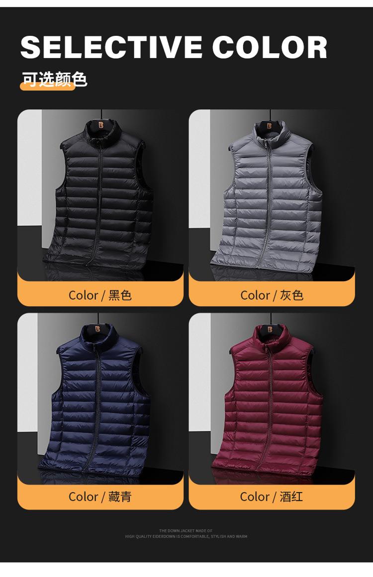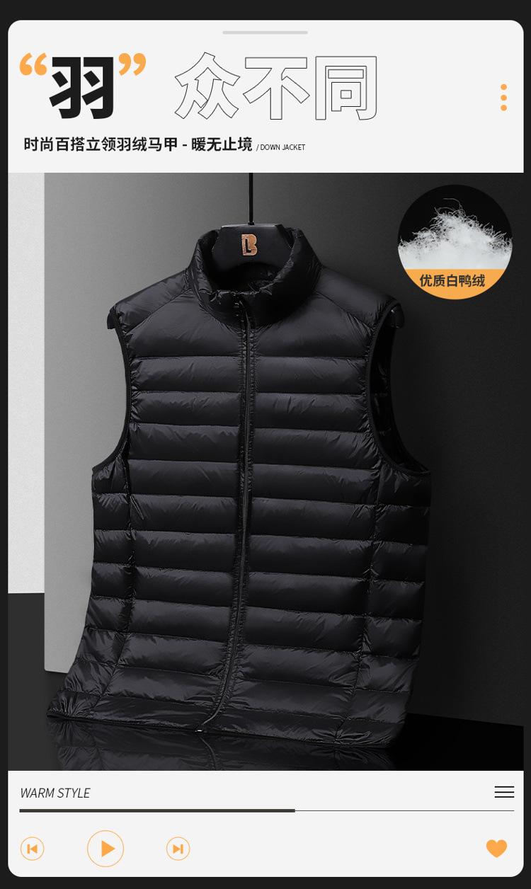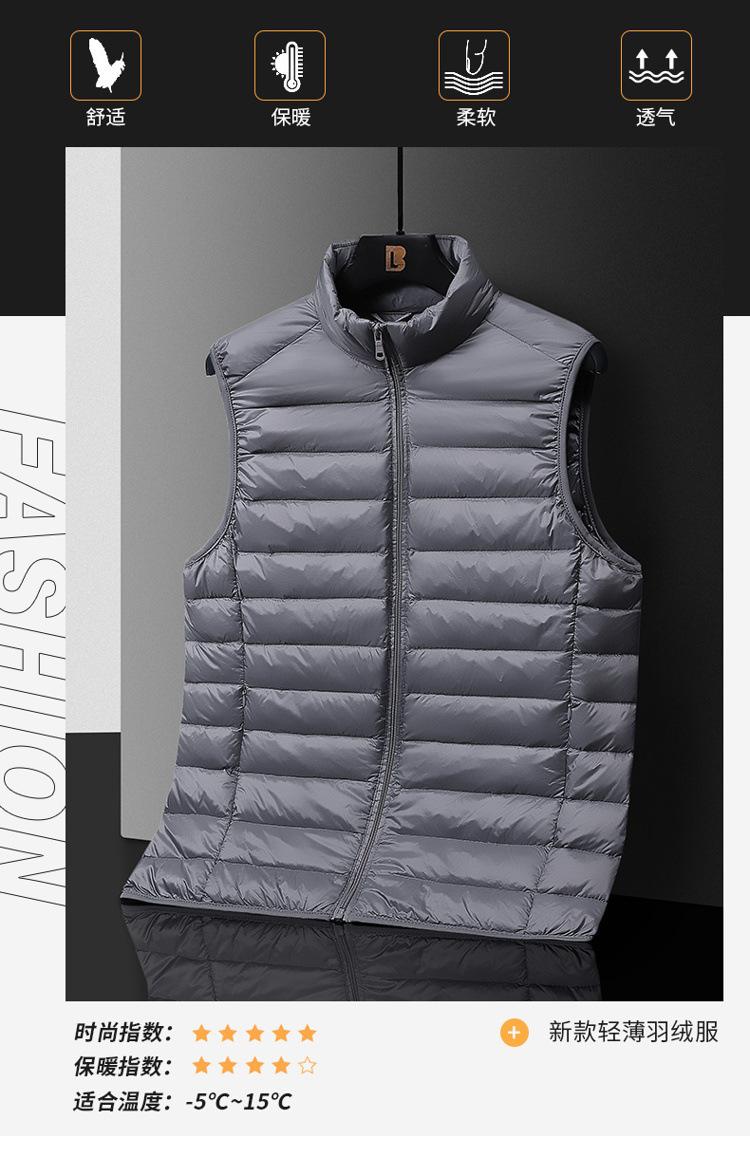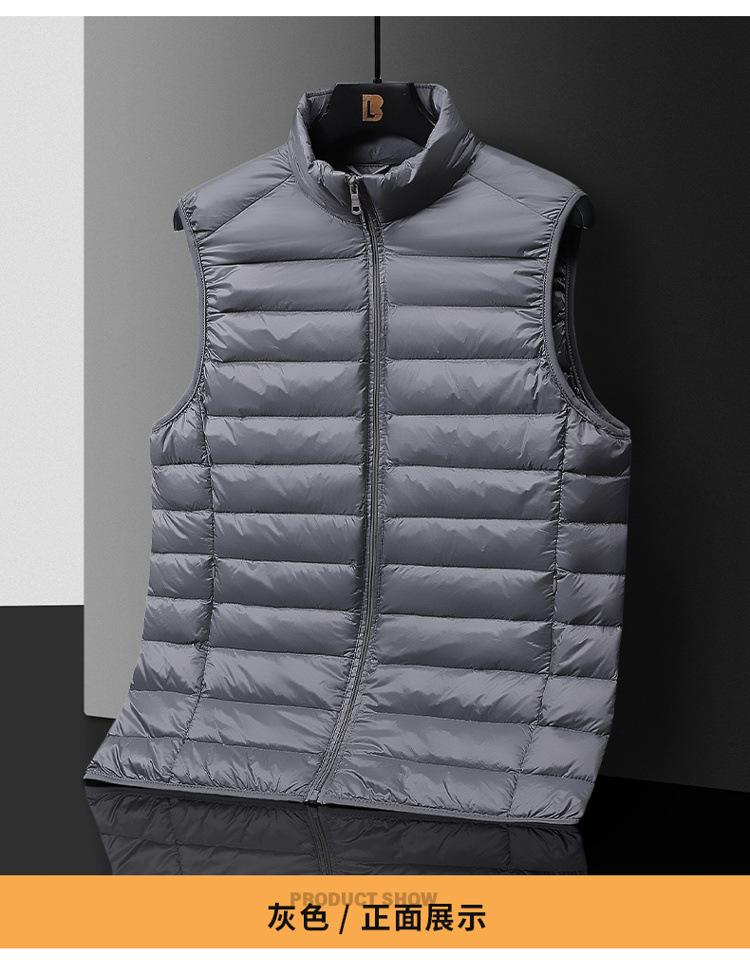 Marca de moda chaleco de plumón con cuello alto transfronterizo chaqueta de plumón ligera para hombre chaleco cálido dos-abierto chaleco de plumón de pato exterior