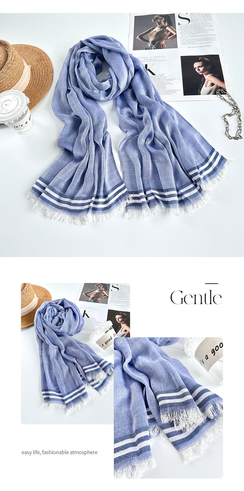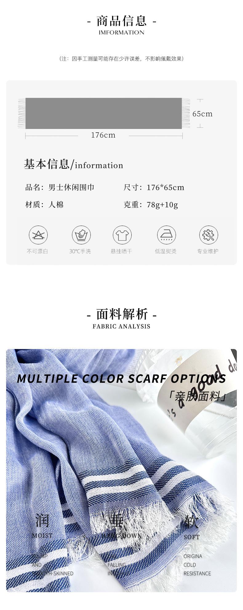 Suministro transfronterizo de bufandas de rayas azules para hombre con un diseño elegante y temperamento a juego, bufandas finas de rayón, venta al por mayor.
