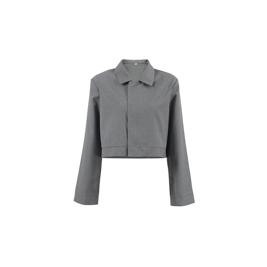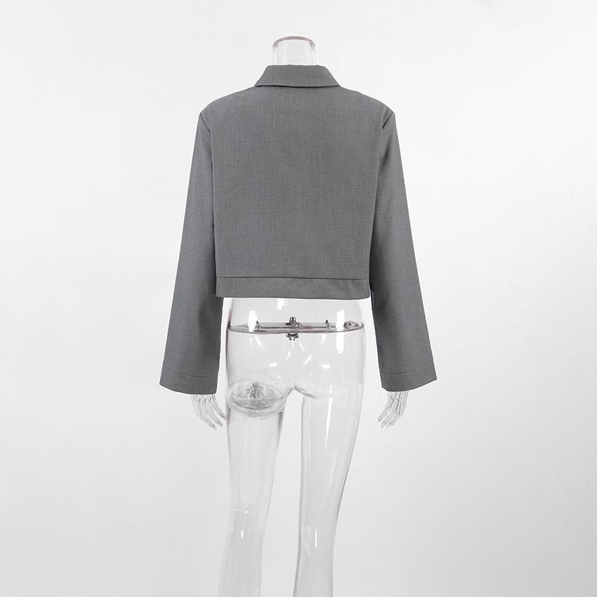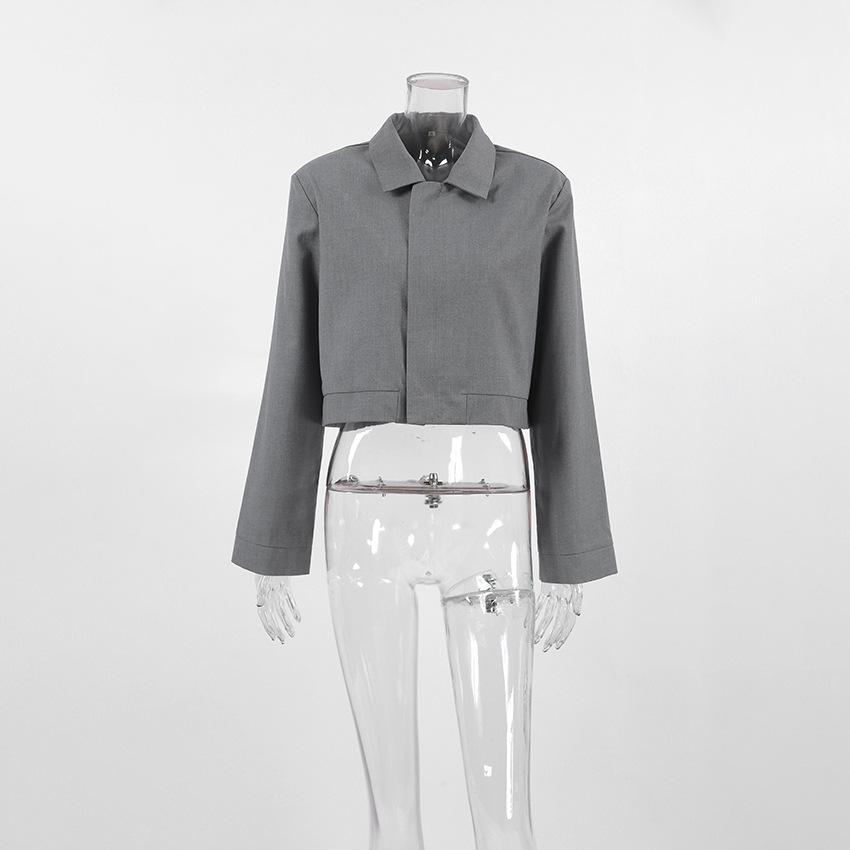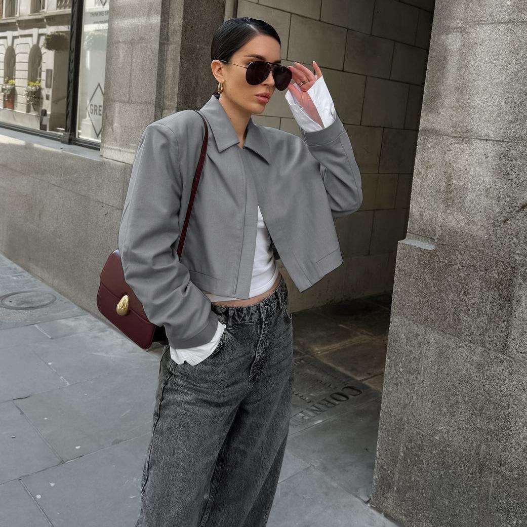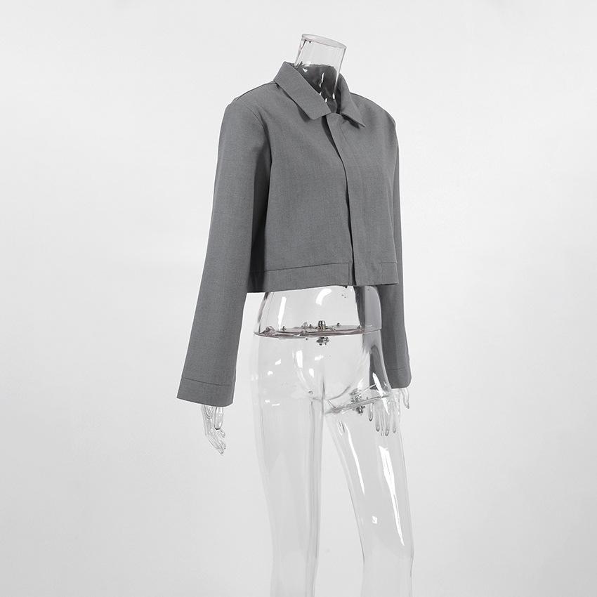 Abrigo corto sencillo de nicho gris de alta gama europeo y americano 2024, nueva moda exterior de otoño e invierno en Amazon