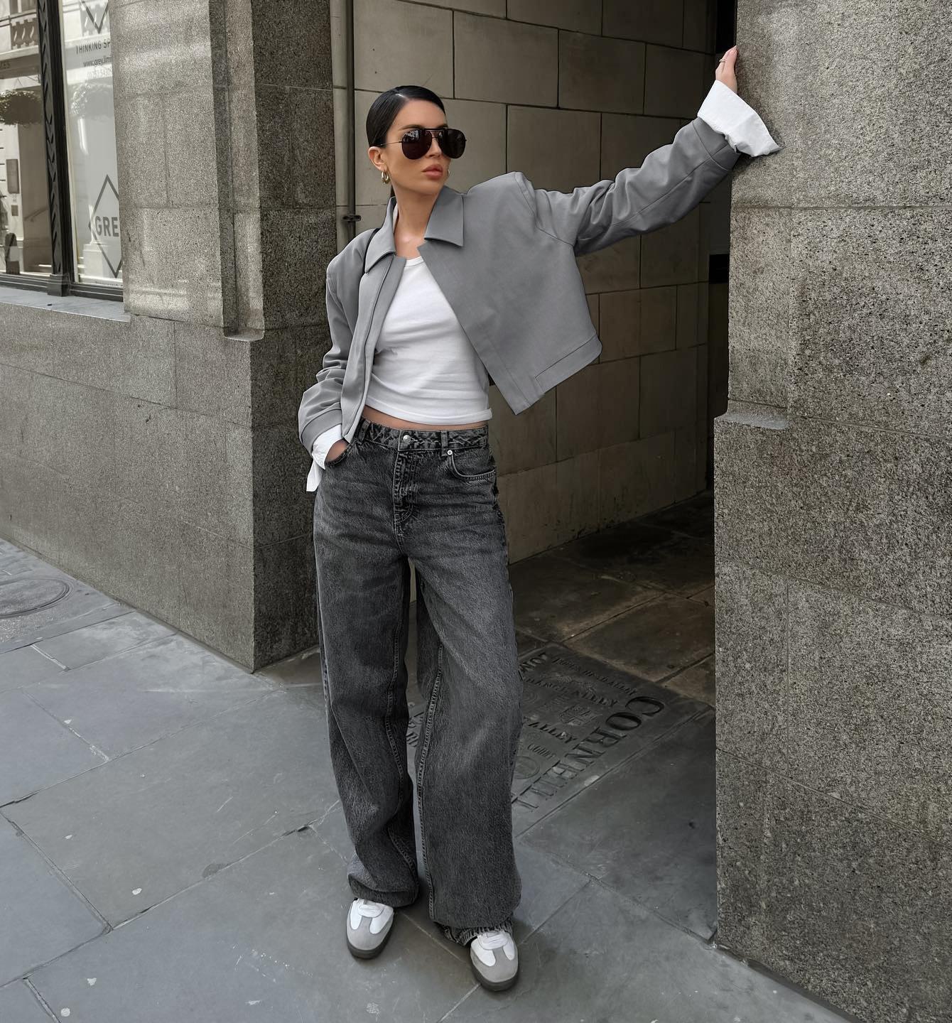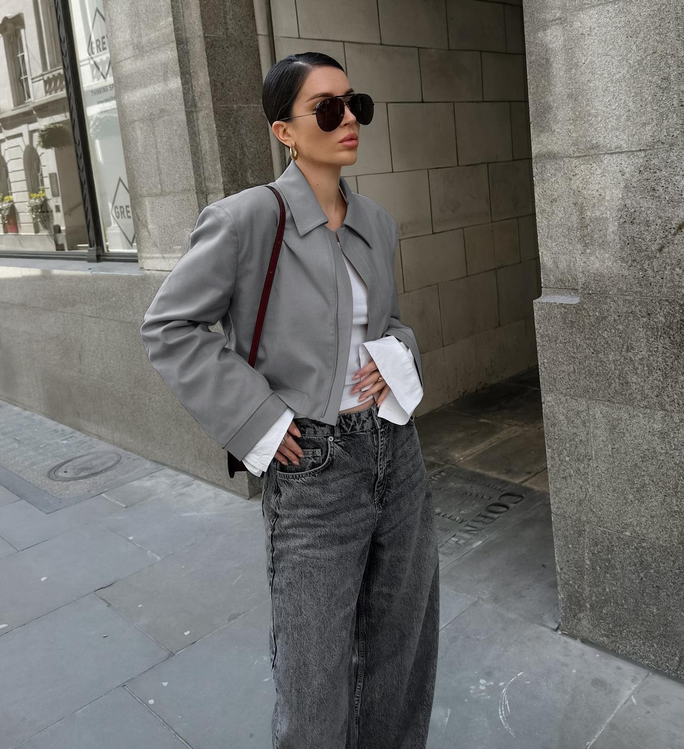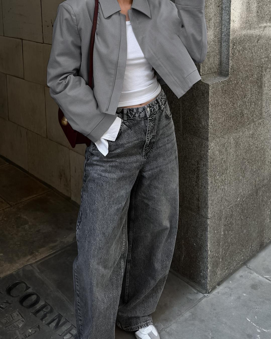 Abrigo corto sencillo de nicho gris de alta gama europeo y americano 2024, nueva moda exterior de otoño e invierno en Amazon