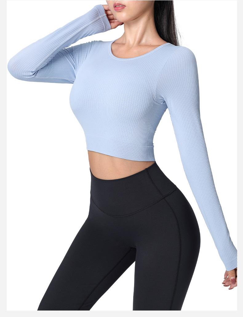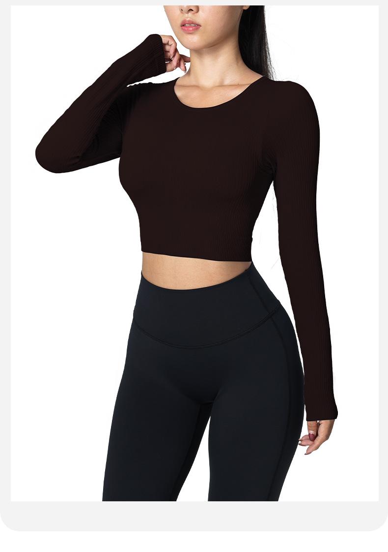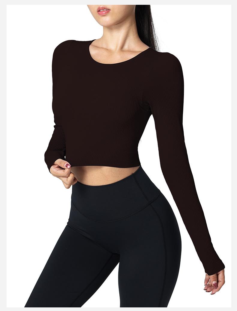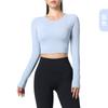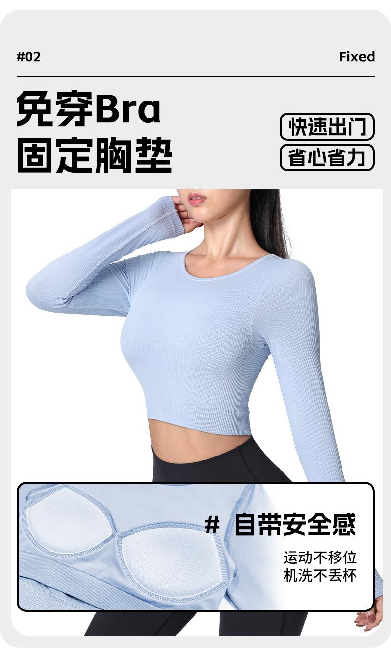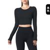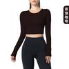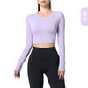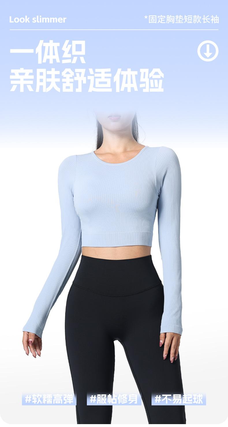 Otoño Ropa de Yoga Nueva Manga Larga para Mujer Corta Ajustada Enterizo Almohadilla en el Pecho Deportes Correr Entrenamiento Ropa de Fitness Top de Mujer