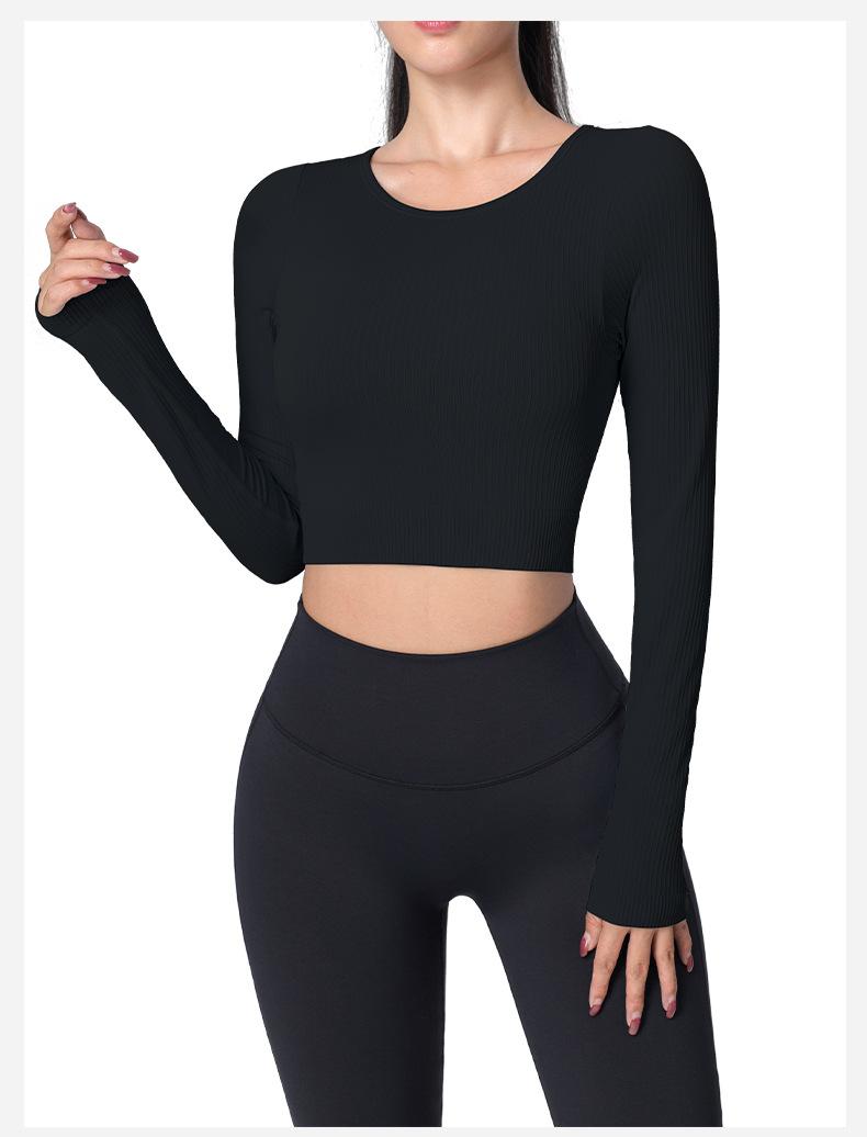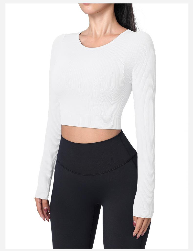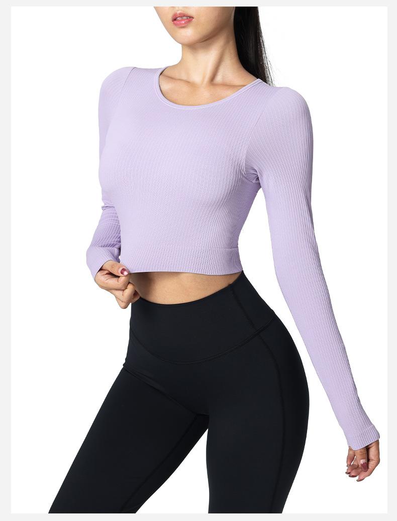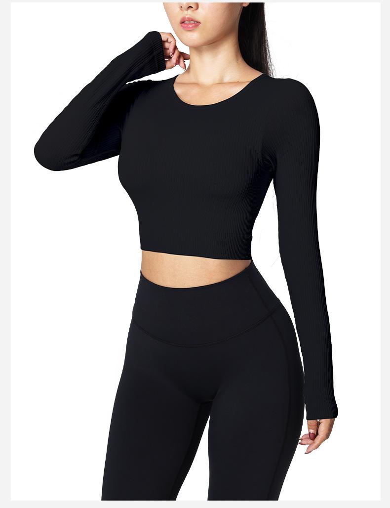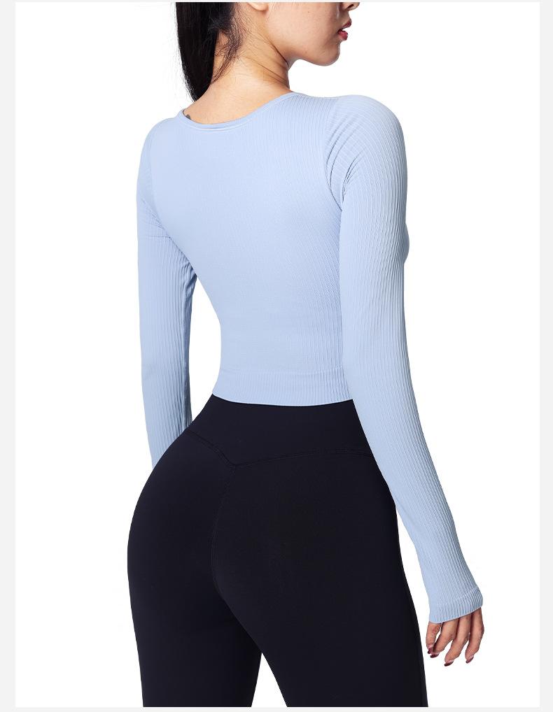 Otoño Ropa de Yoga Nueva Manga Larga para Mujer Corta Ajustada Enterizo Almohadilla en el Pecho Deportes Correr Entrenamiento Ropa de Fitness Top de Mujer