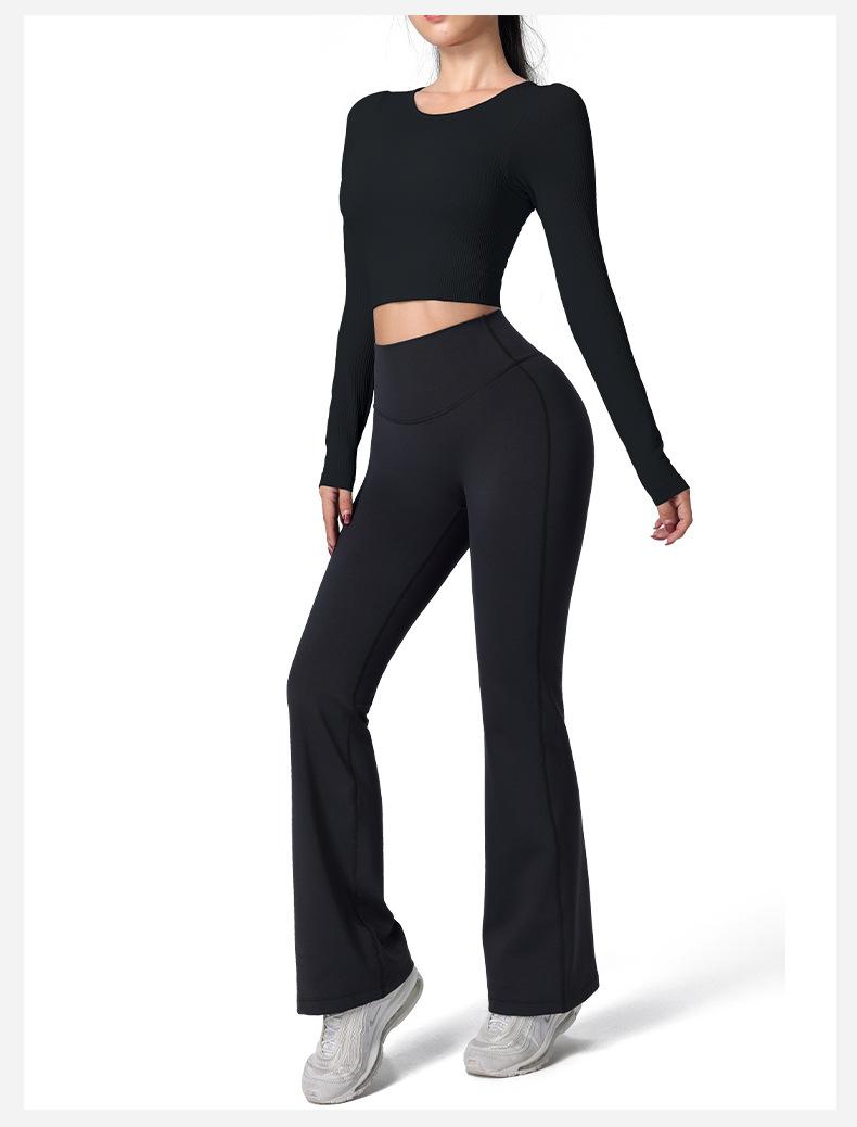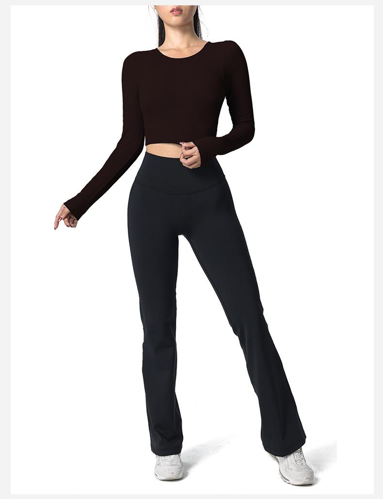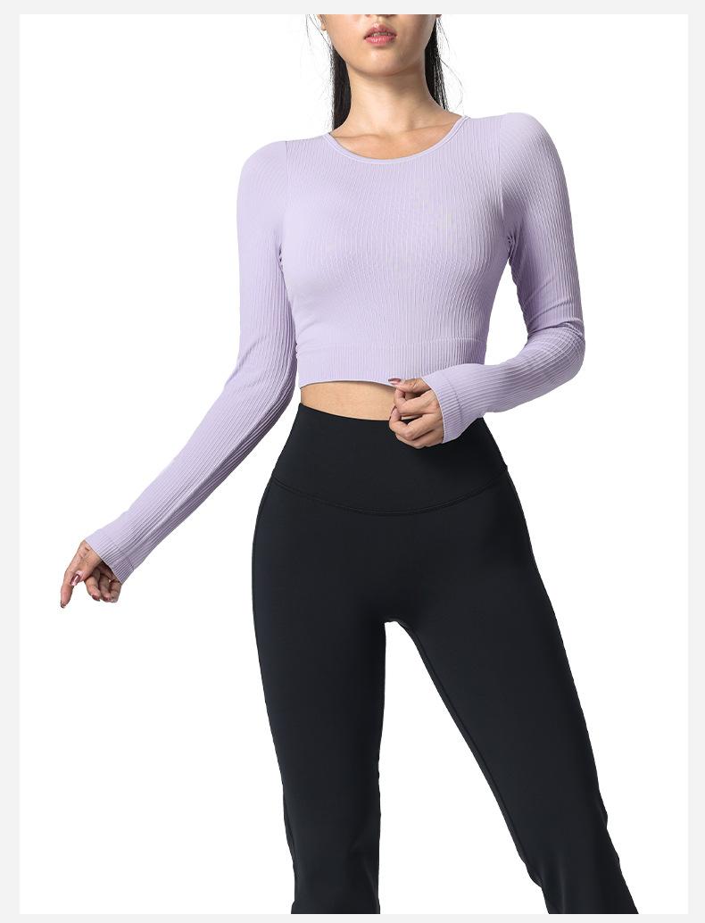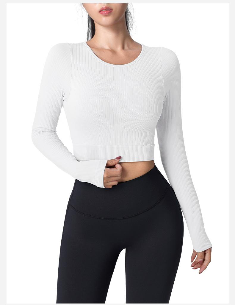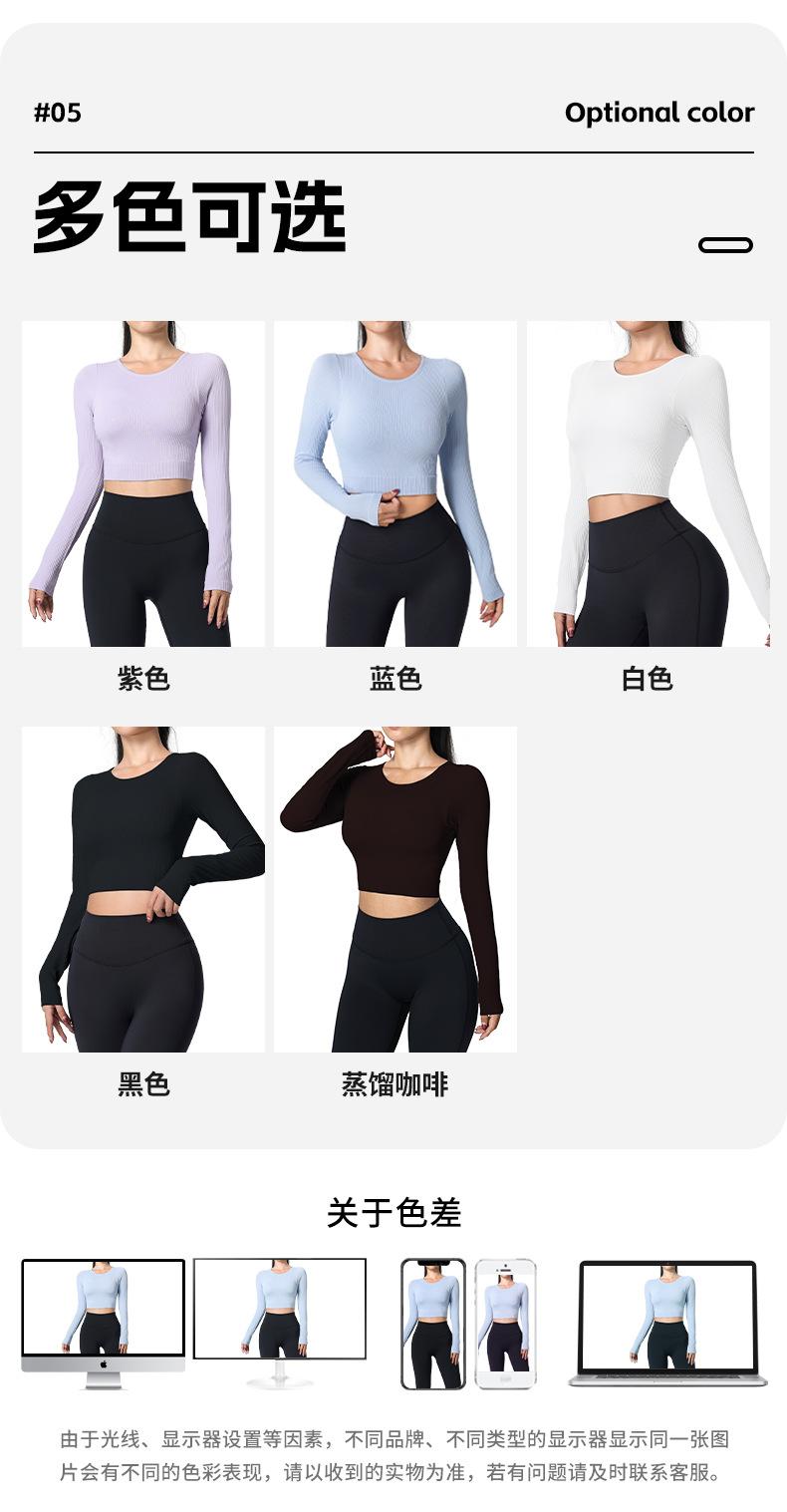Otoño Ropa de Yoga Nueva Manga Larga para Mujer Corta Ajustada Enterizo Almohadilla en el Pecho Deportes Correr Entrenamiento Ropa de Fitness Top de Mujer