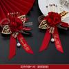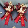 Corsage de boda para novios, familia, padres, padrino, dama de honor, exquisito conjunto completo de alta gama de corsage broche rojo de boda