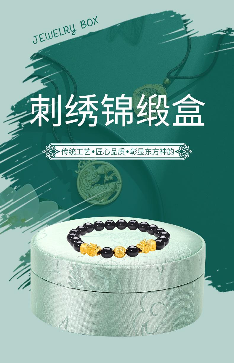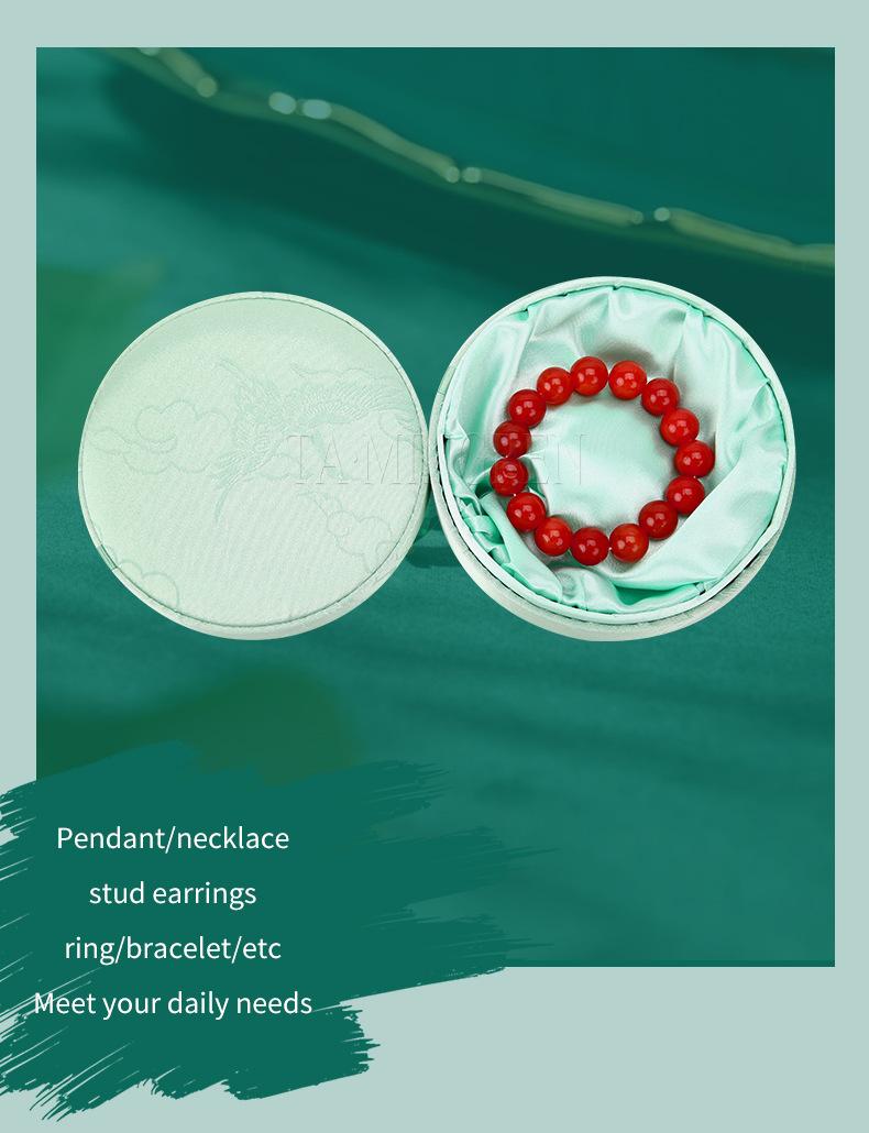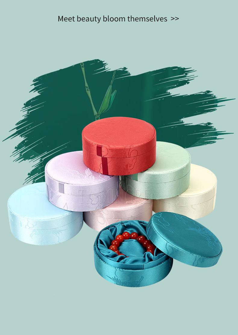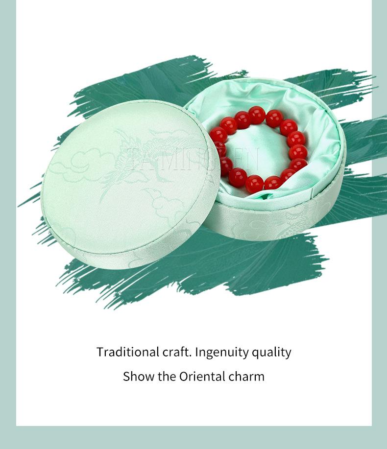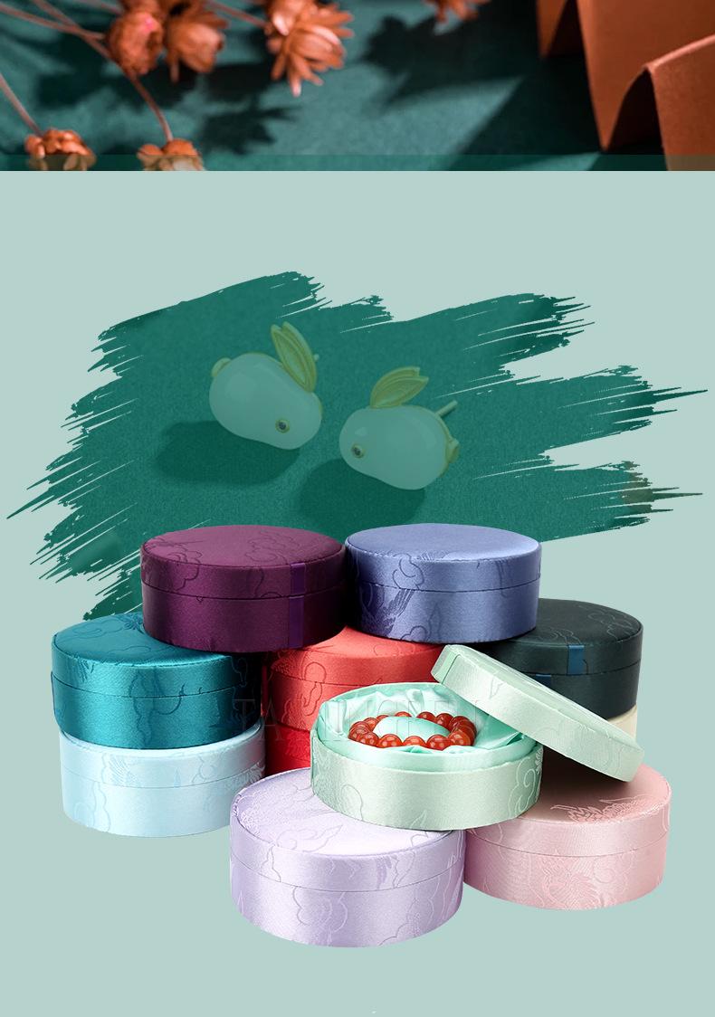 Caja de Pulsera Bordada de Alta Gama, Caja de Joyería para Pulsera de Cuentas Budistas de Estilo Chino, Cubierta Cielo y Tierra, Caja Redonda de Embalaje para Juguete de Jade