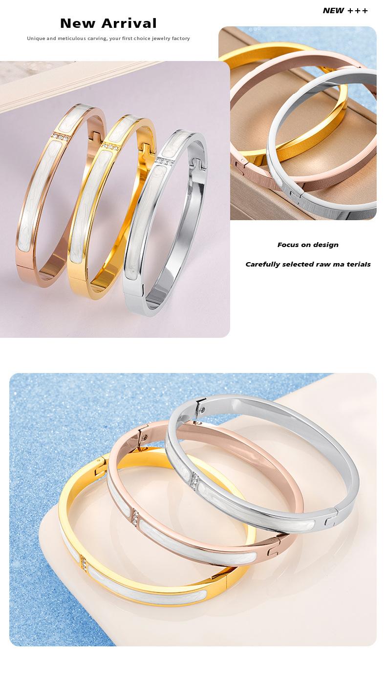 Pulsera clásica 2023 de acero inoxidable que combina con todo, epoxi blanco, diseño avanzado, acero titanio personalizado chapado en oro de 18 quilates