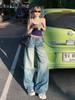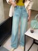 En stock, nuevos pantalones vaqueros para mujer, pantalones casuales de cintura alta, vaqueros rectos azules con rizos retro para mujer