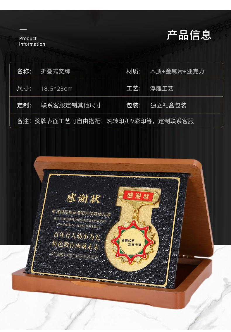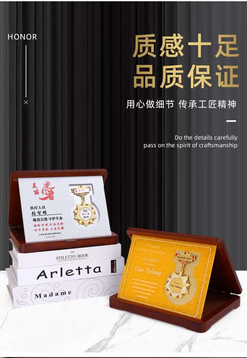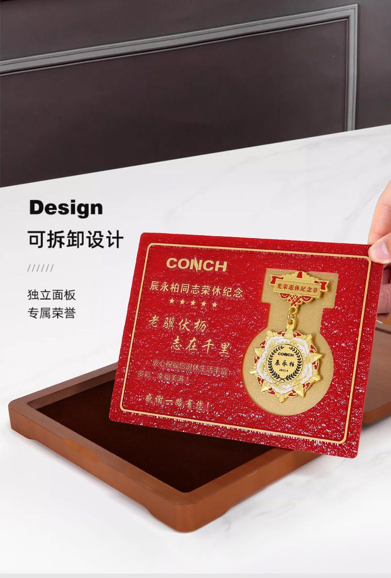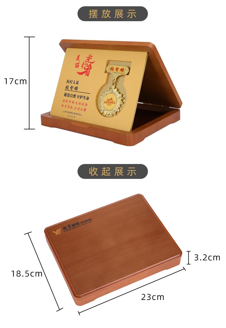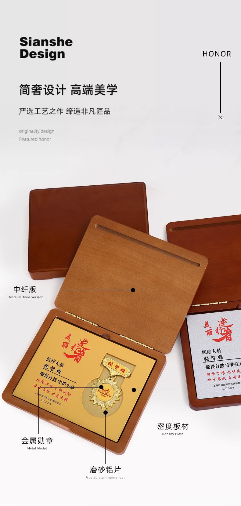 Tarjeta de autorización de medalla tríptica medalla bandeja de madera medalla conmemorativa decoración gloriosa de jubilación excelente personal de la empresa Medalla de agradecimiento