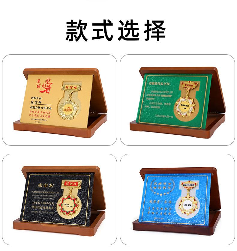 B001 medal + folding wooden box, B002 medal + folding wooden box, A001 embossed acrylic + medal + folding wood...