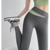 Pantalones de yoga transfronterizos para mujer, de cintura alta, falsos, de dos piezas, ajustados y elásticos, para correr.