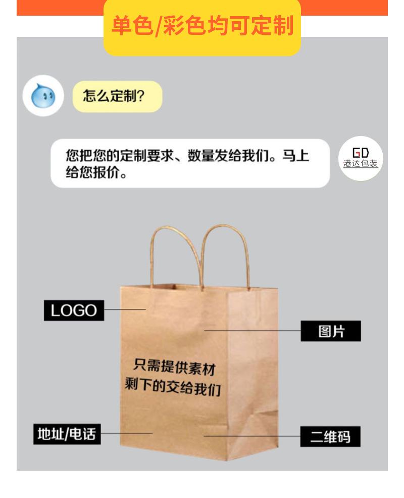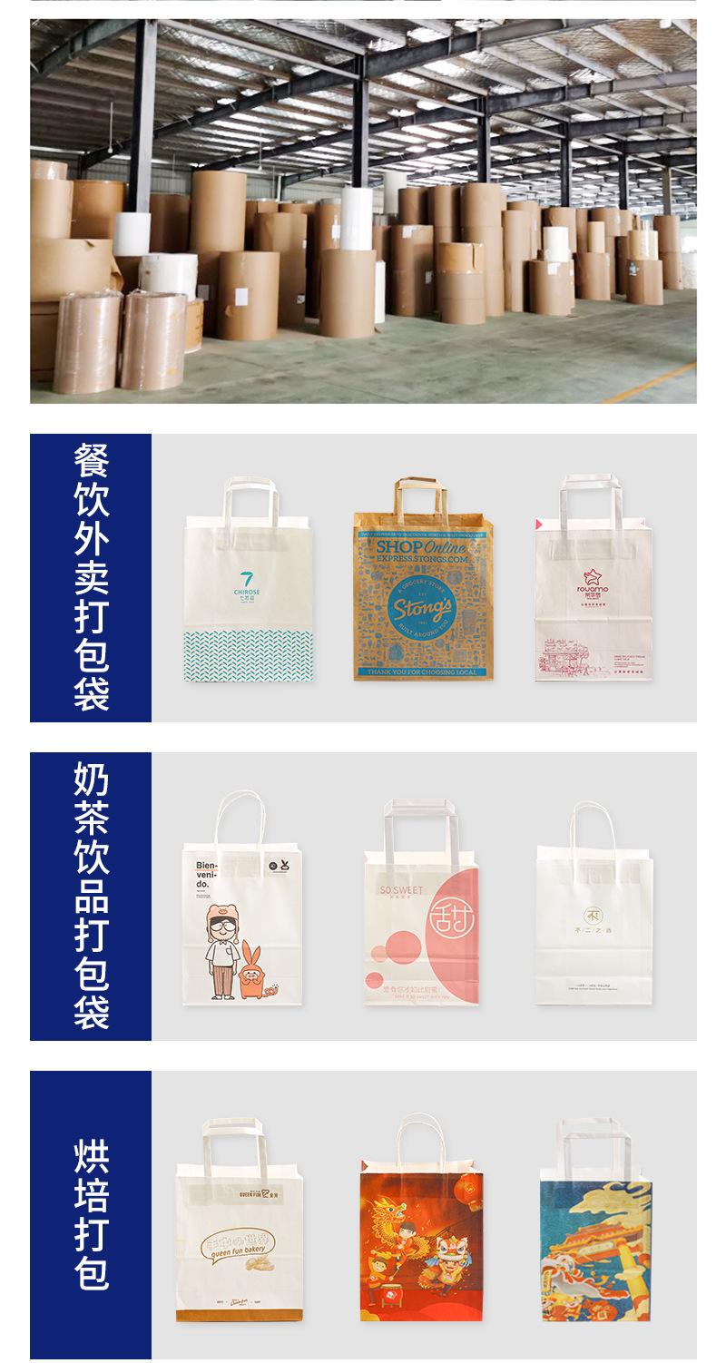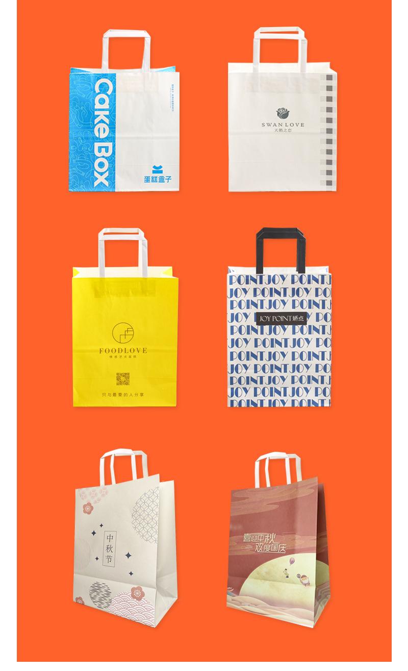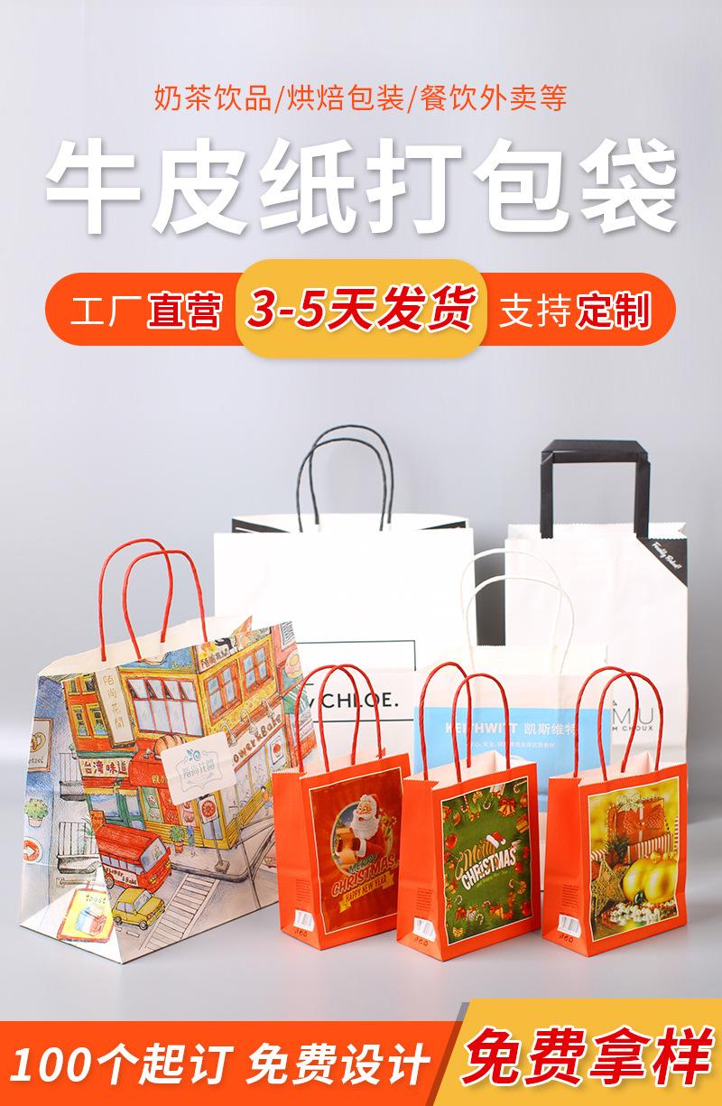 Bolsa de papel portátil con patrón imprimible, para llevar, para catering, para regalo de ropa, con logotipo impreso, venta al por mayor