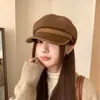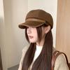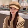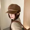 Boina de Pintor Retro Británica Combinable para Mujer Otoño e Invierno de Cuero PU Cornisa Sombrero Lengua de Pato Muestra Rostro Pequeño Sombrero Octogonal de Repartidor