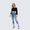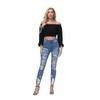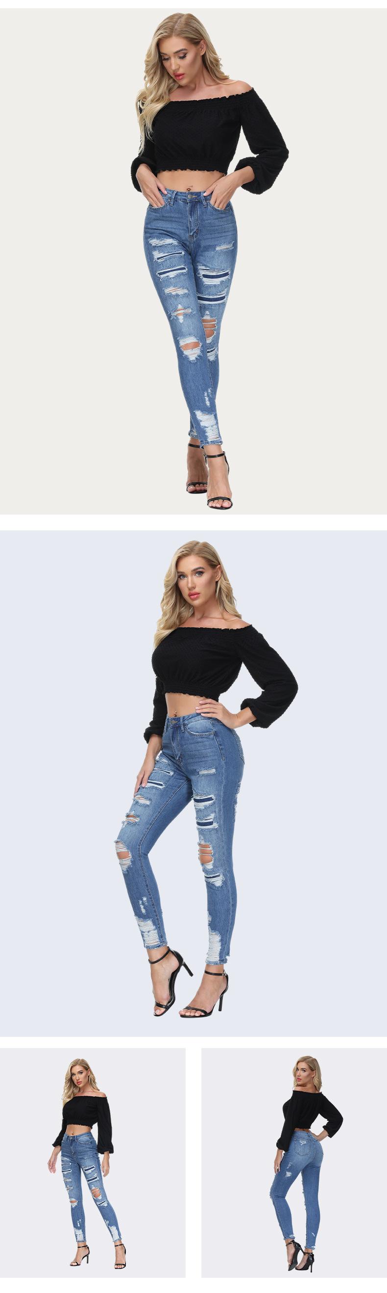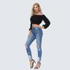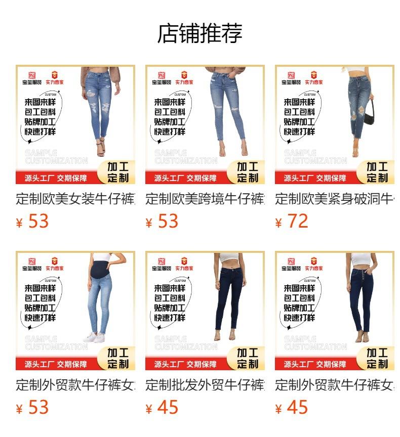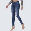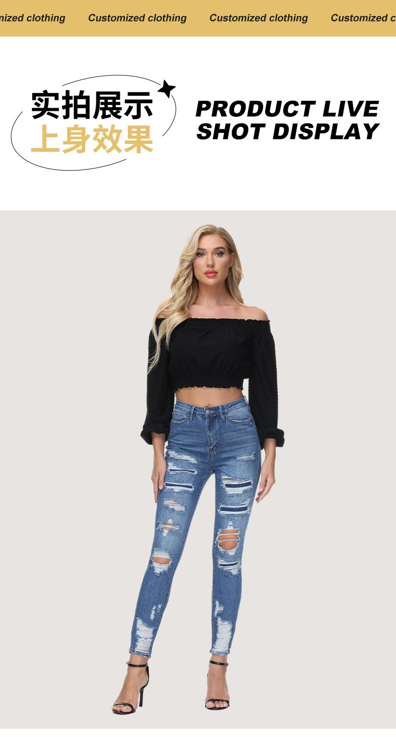 Jeans ajustados de estilo europeo y americano, personalizados, con agujeros y pernera estrecha, estilo de exportación procesado, para mujer.