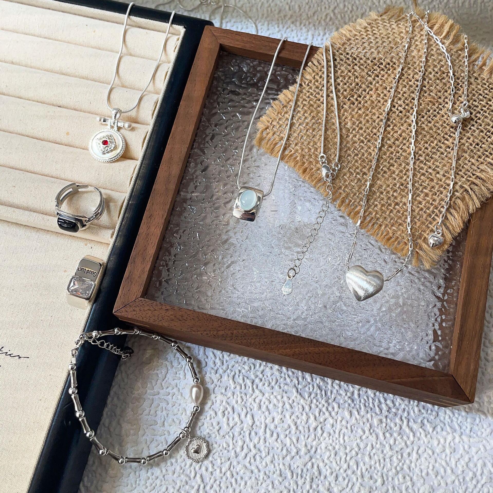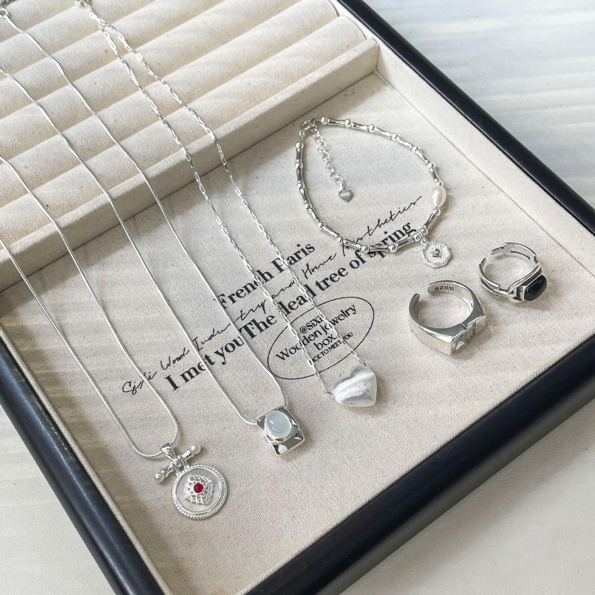 Collar y anillo de plata de ley Ruitai s925, colección primavera/verano 2024, nuevo collar sencillo de nicho de alta gama.