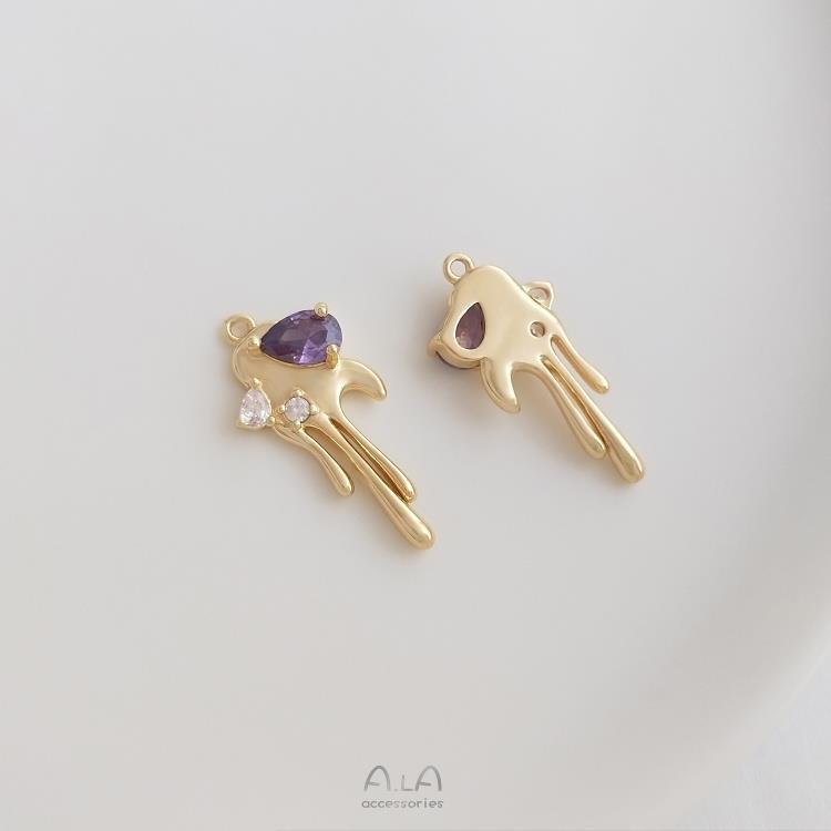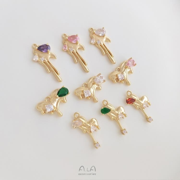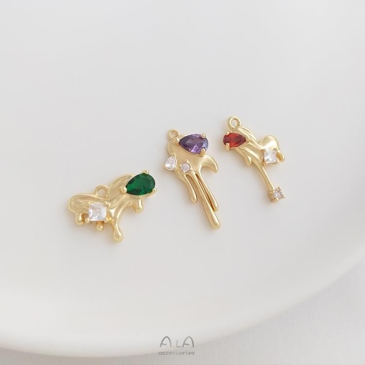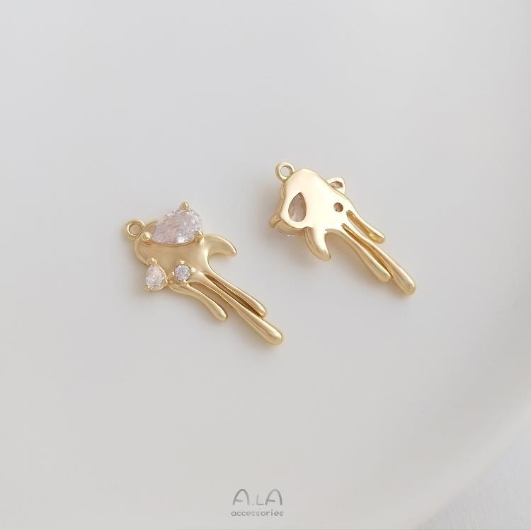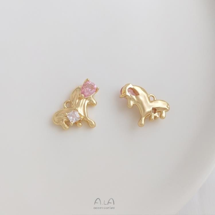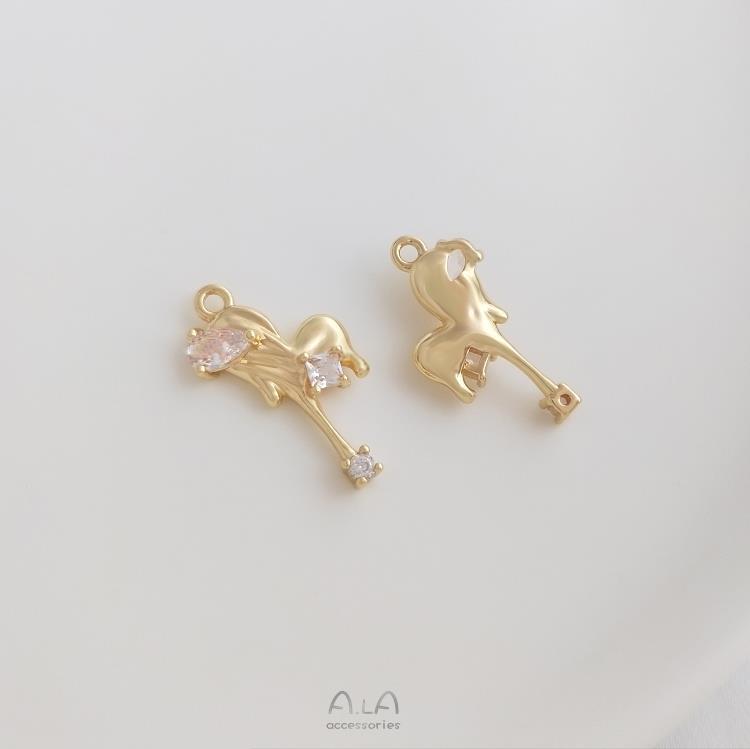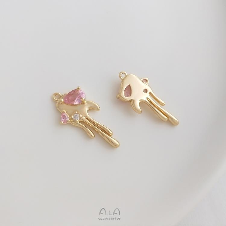 Colgante de amor con circonitas de color dorado y revestido de cobre, diseño moderno, gotas de agua, corazón de melocotón, pulsera, collar, accesorios para hacer tú mismo.