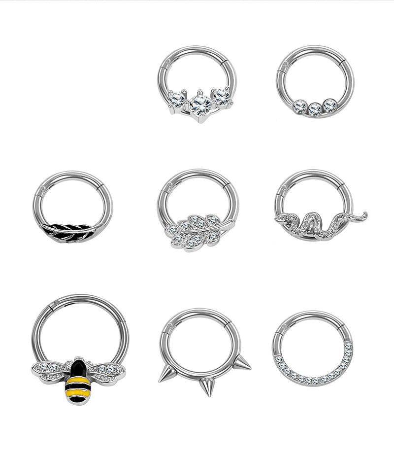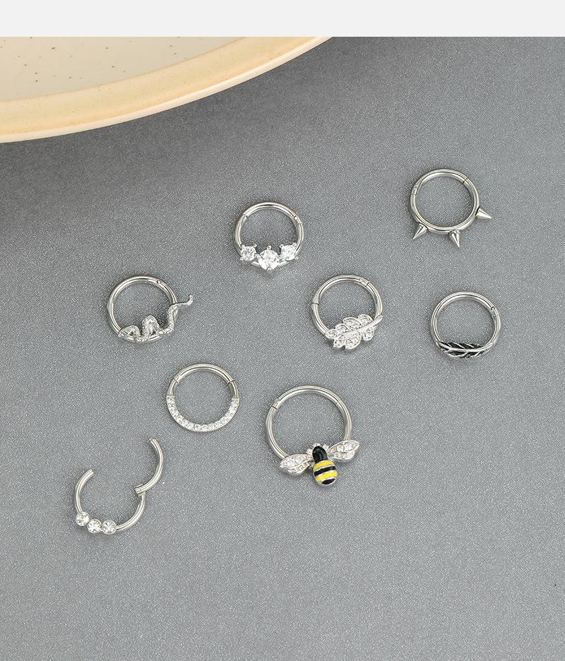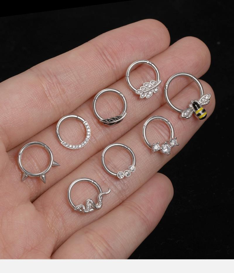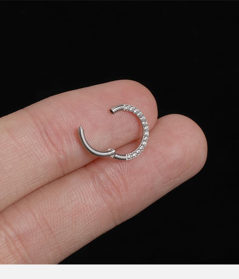 Anillo nasal de acero de titanio personalizado para mujer, diseño fresco de otoño, con incrustaciones de diamantes redondos de acero inoxidable, perforación de hueso blando, decoración para la nariz con uña