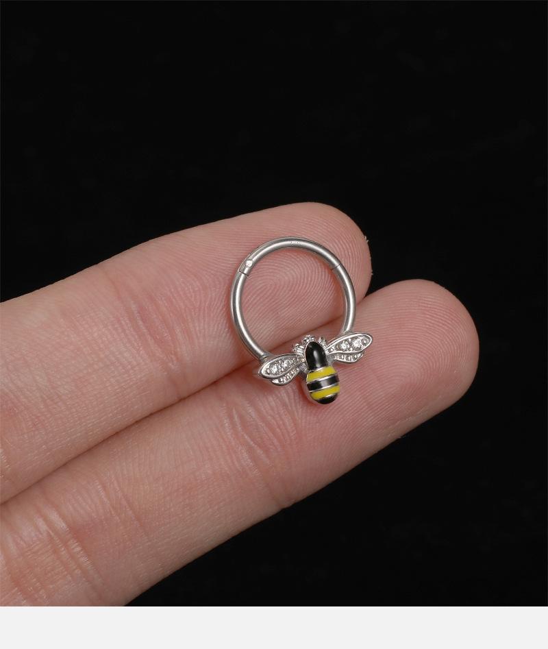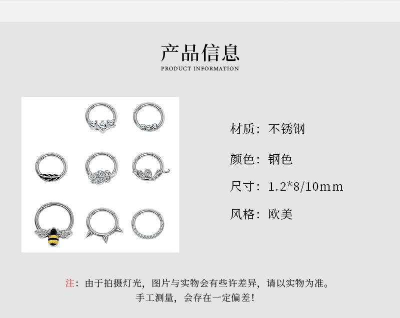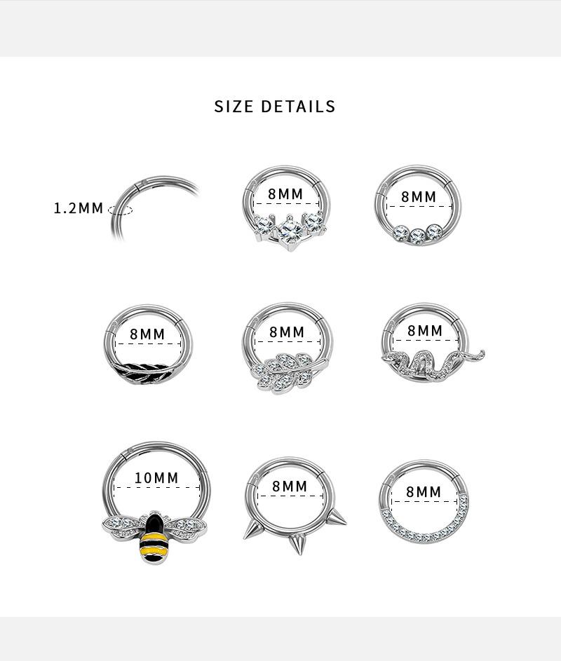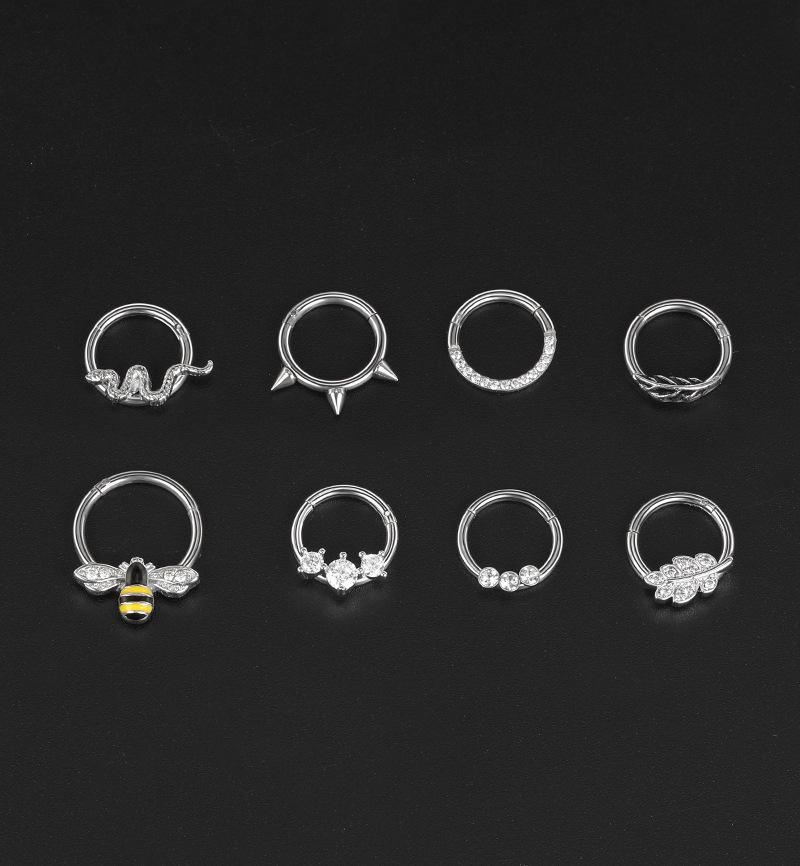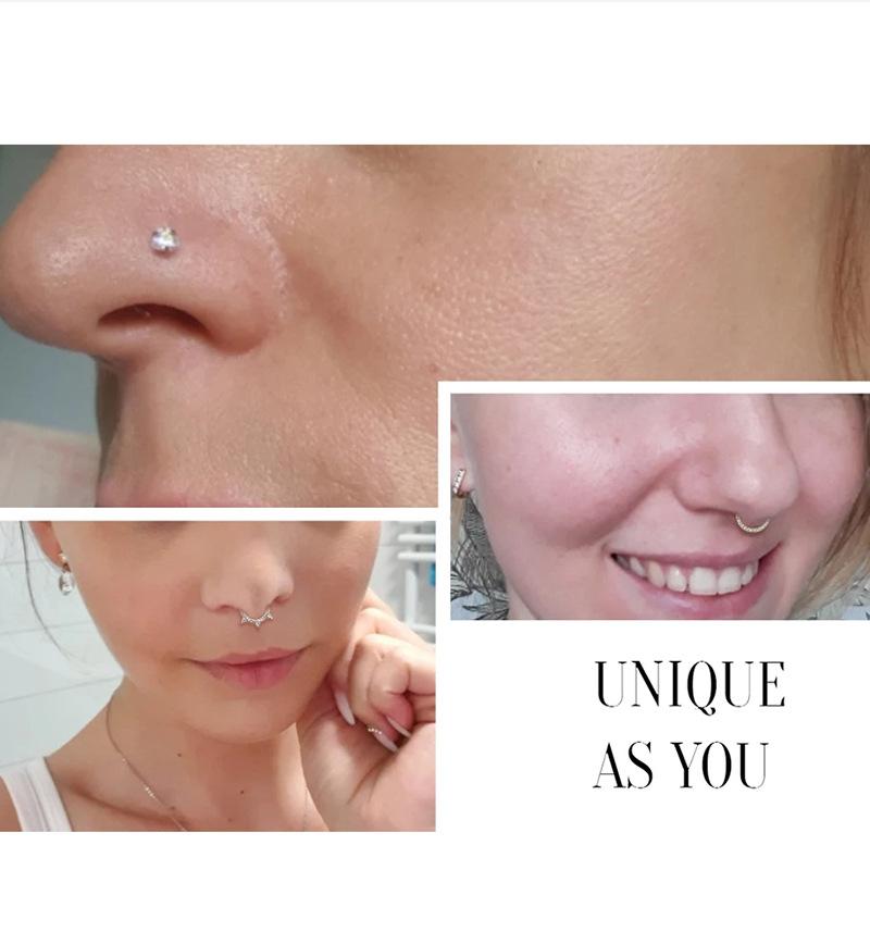 Anillo nasal de acero de titanio personalizado para mujer, diseño fresco de otoño, con incrustaciones de diamantes redondos de acero inoxidable, perforación de hueso blando, decoración para la nariz con uña