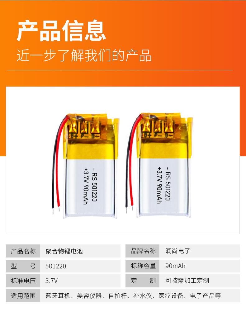 Batería de polímero de litio 501220 90 mAh cerradura electrónica termómetro infrarrojo de frente instrumento de belleza fabricantes de baterías de litio