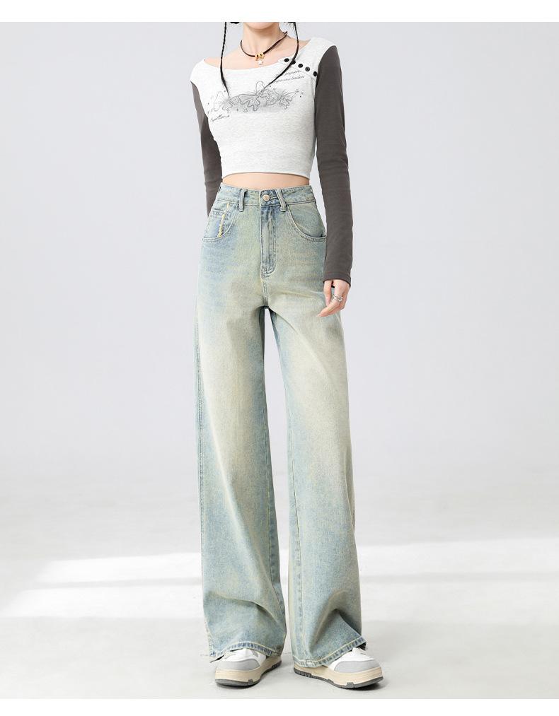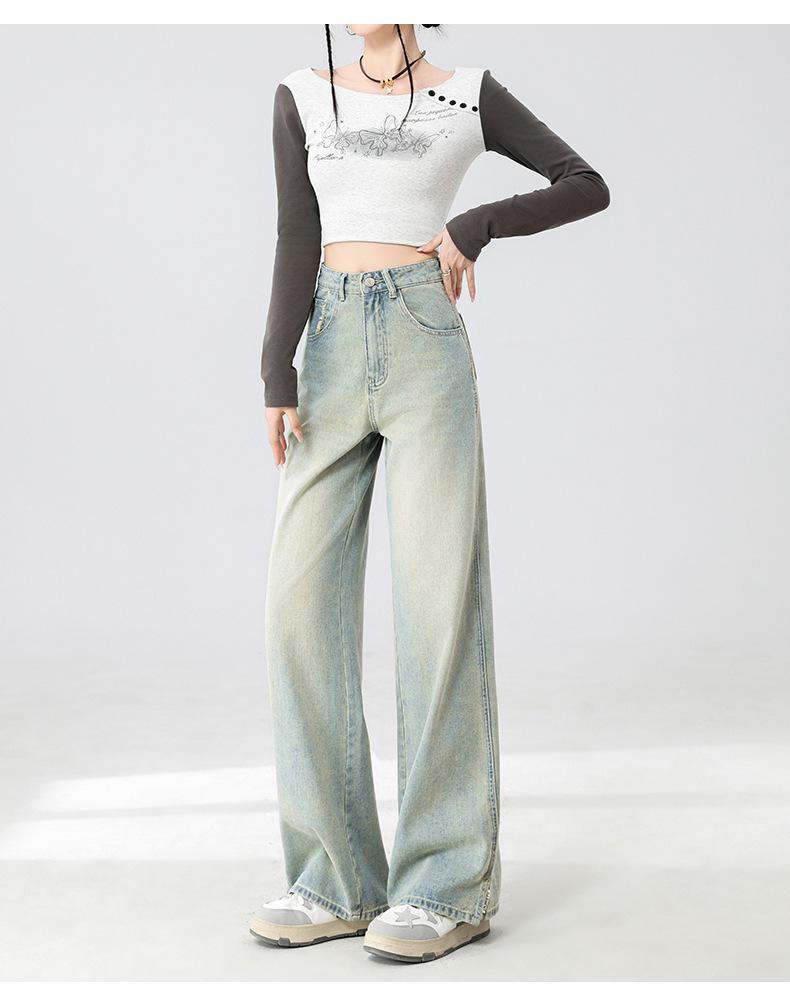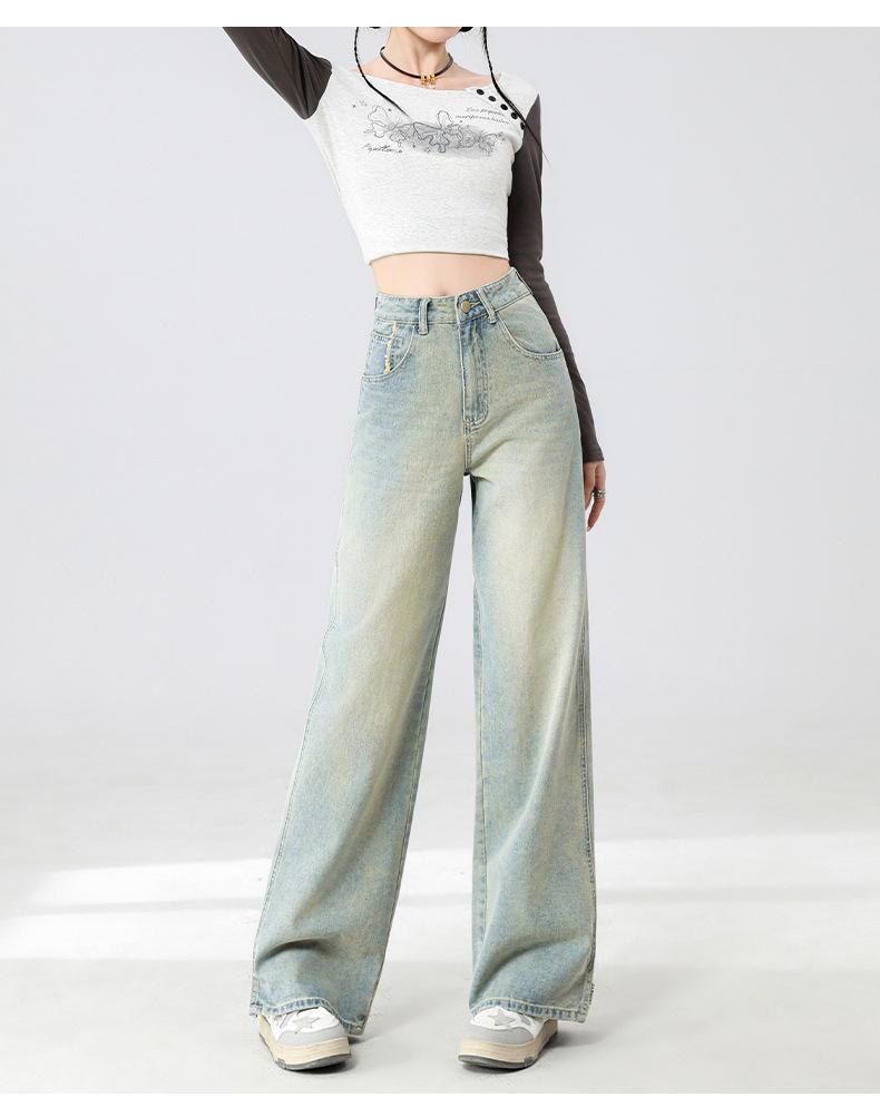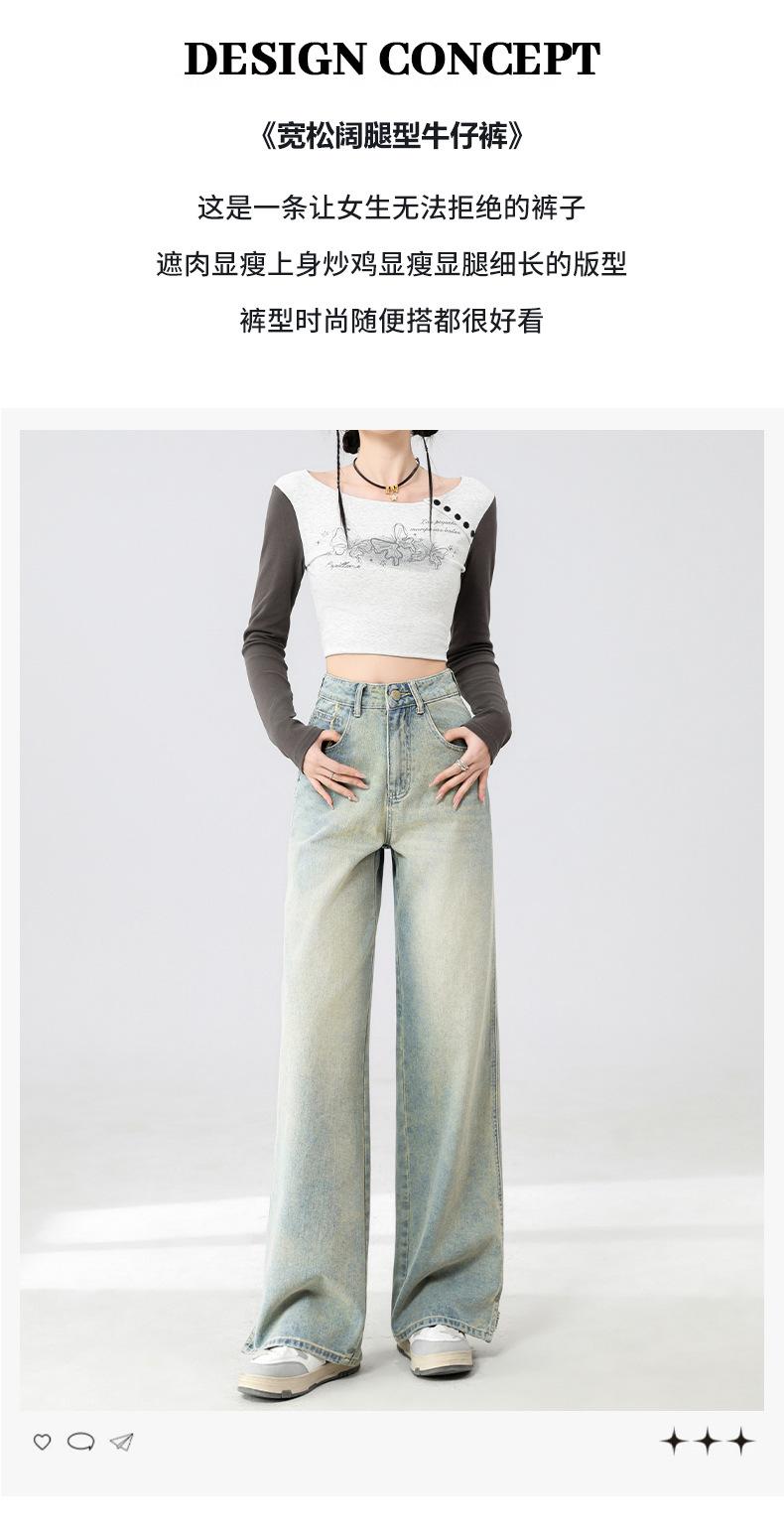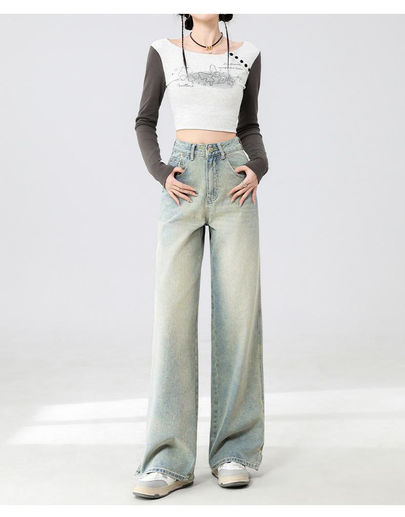 Jeans Retro Azules de Pierna Ancha para Mujer en Otoño 2025 Nuevo Estilo Pequeños de Cintura Alta Sueltos con Aspecto Adelgazante Pantalones Largos Rectos