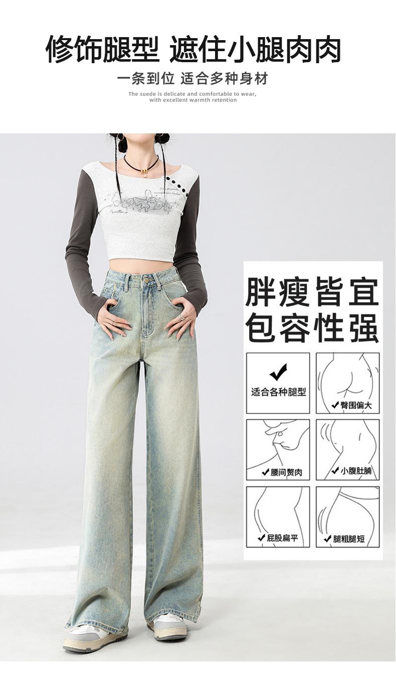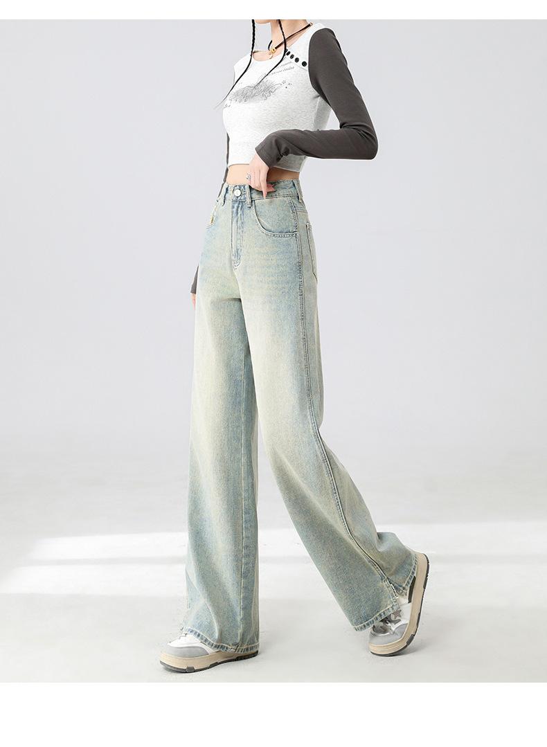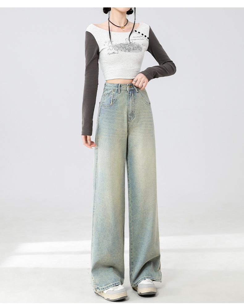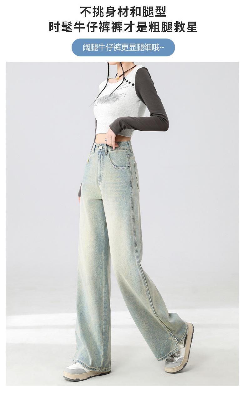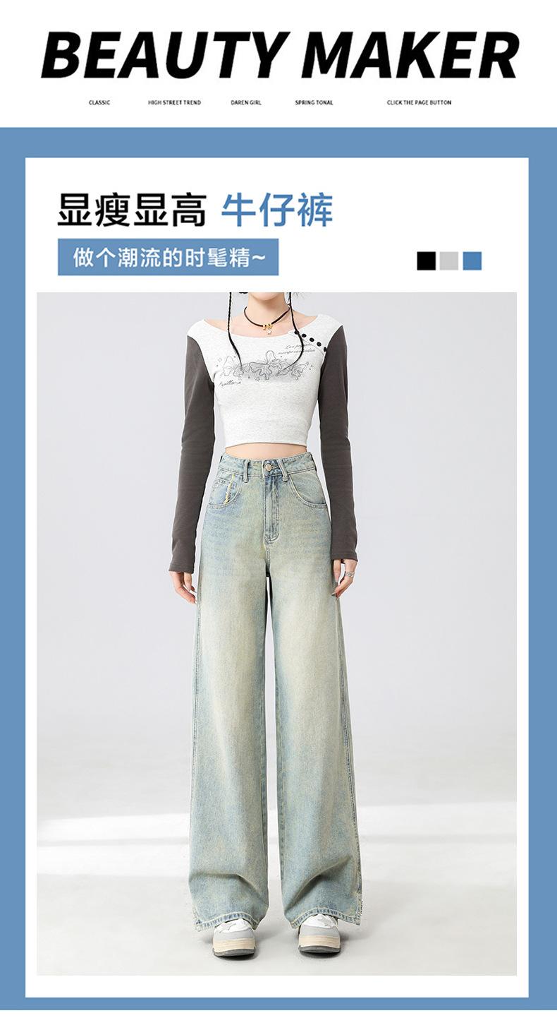 Jeans Retro Azules de Pierna Ancha para Mujer en Otoño 2025 Nuevo Estilo Pequeños de Cintura Alta Sueltos con Aspecto Adelgazante Pantalones Largos Rectos