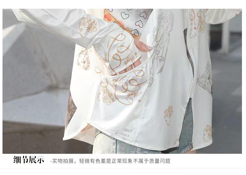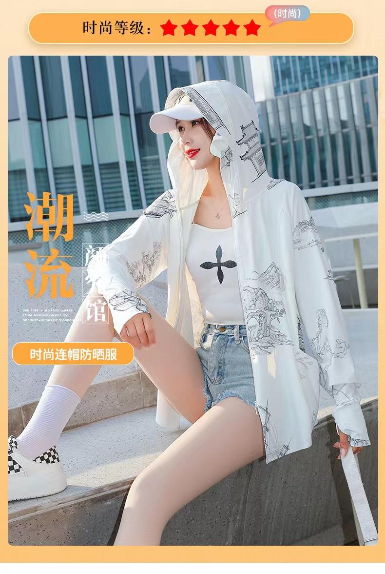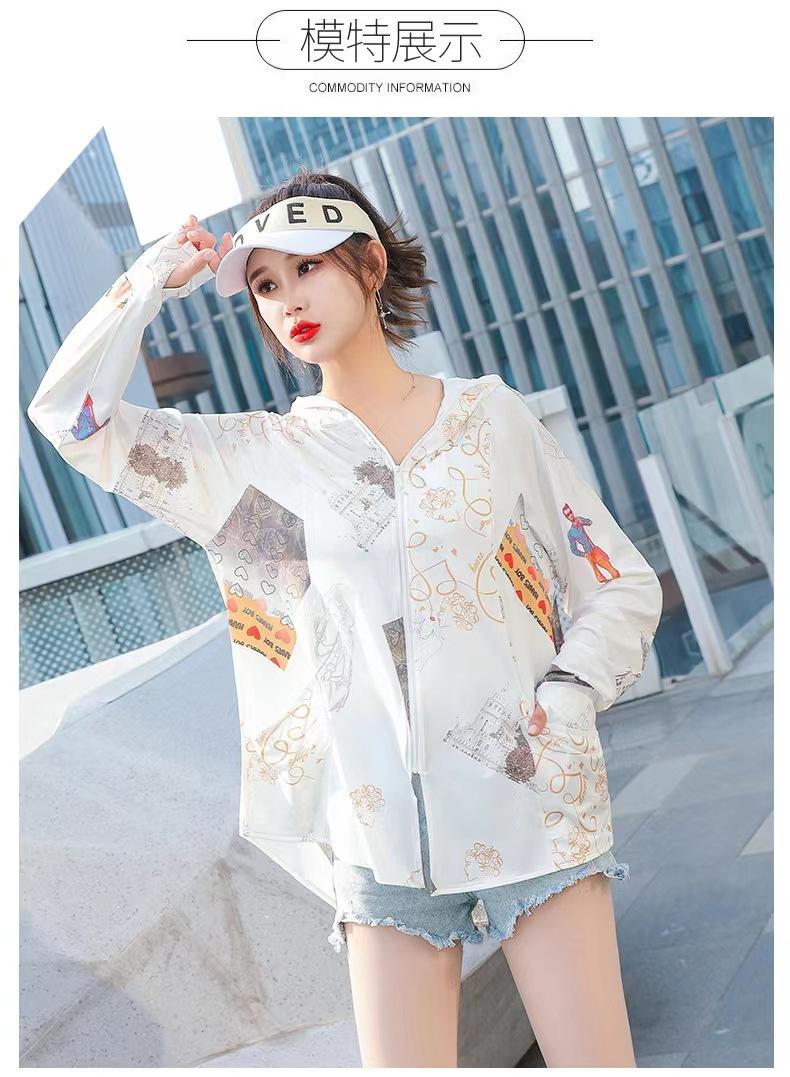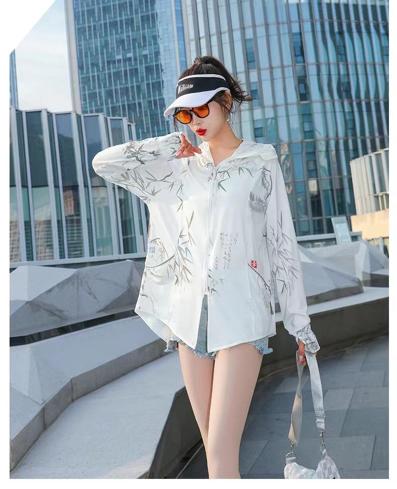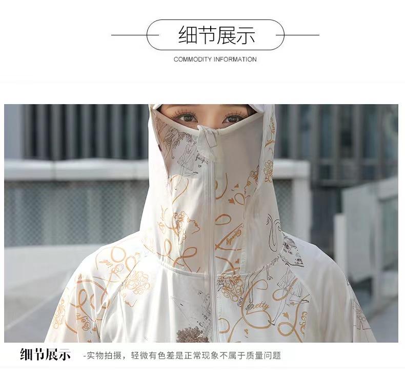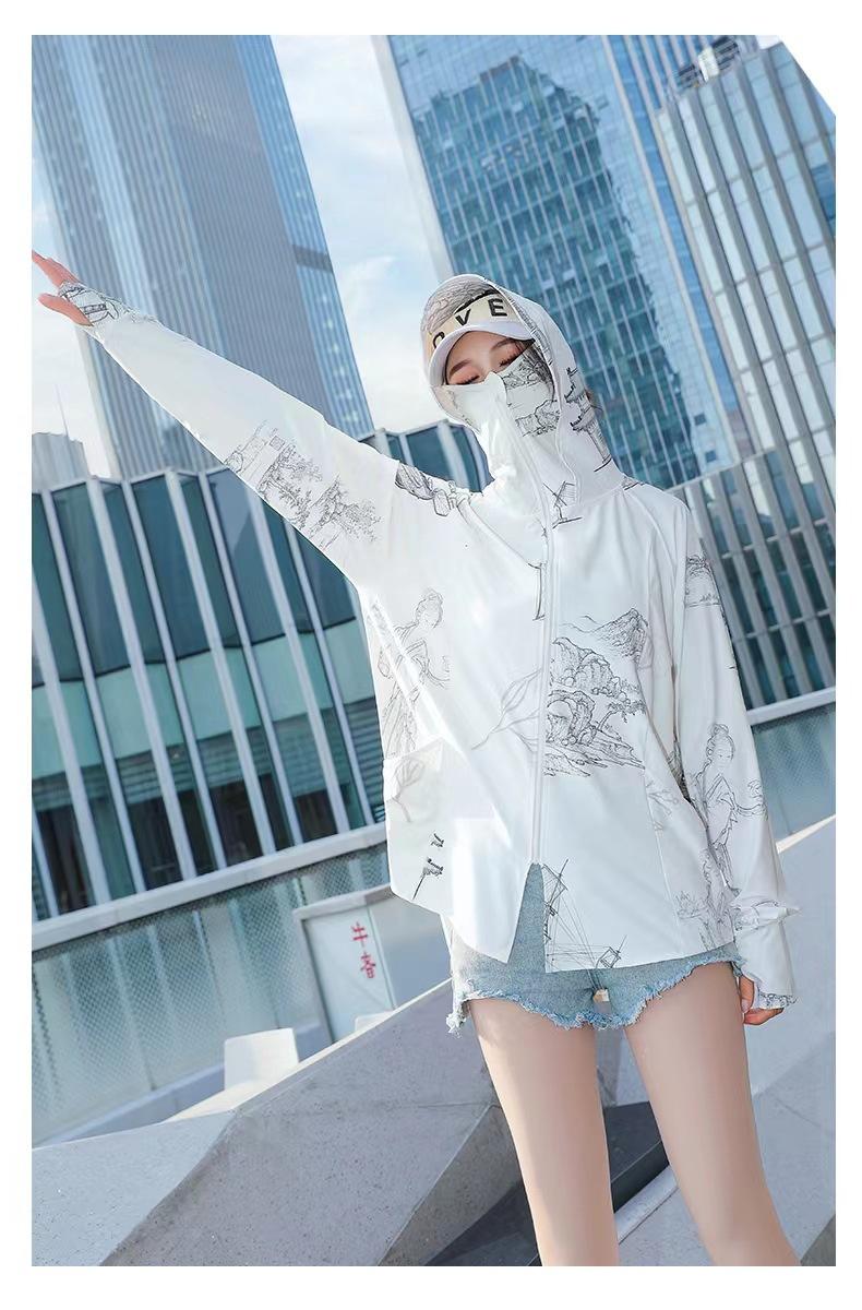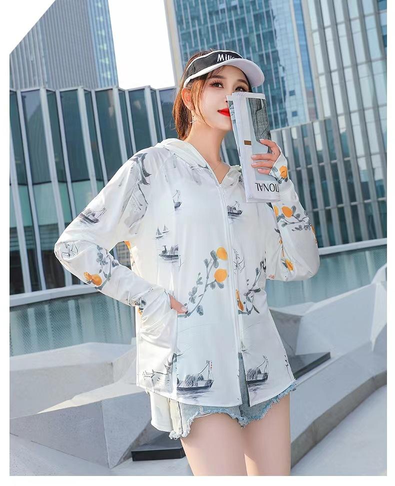 Ropa de Protección Solar Larga de Moda para Mujer, Chaqueta de Seda Helada con Protección Solar Estampada de Otoño, Ropa de Protección Solar con Capucha Delgada y Moderna al Por Mayor
