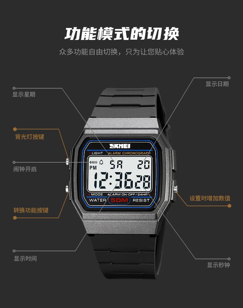 Time, stopwatch timing, EL luminous 4mm Display date, alarm clock, Display Week, hour, 12/24 hour system