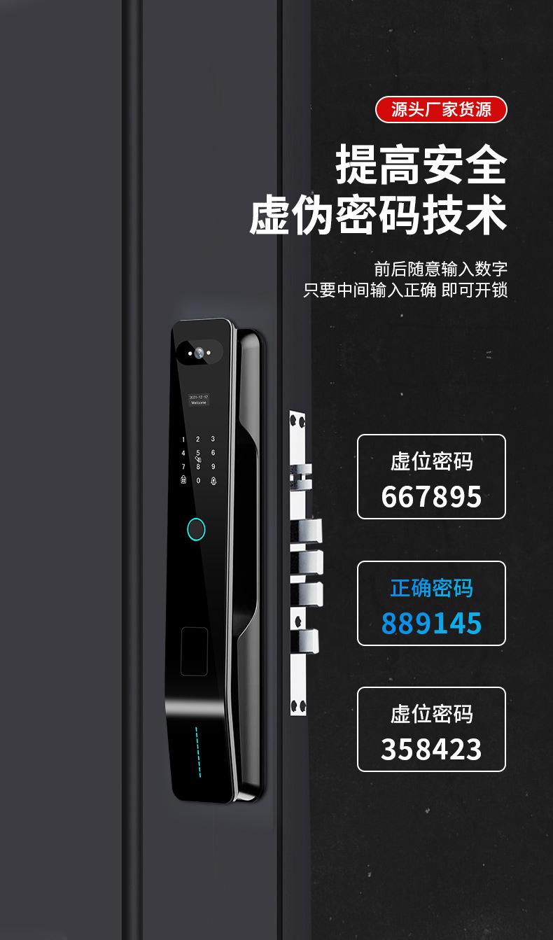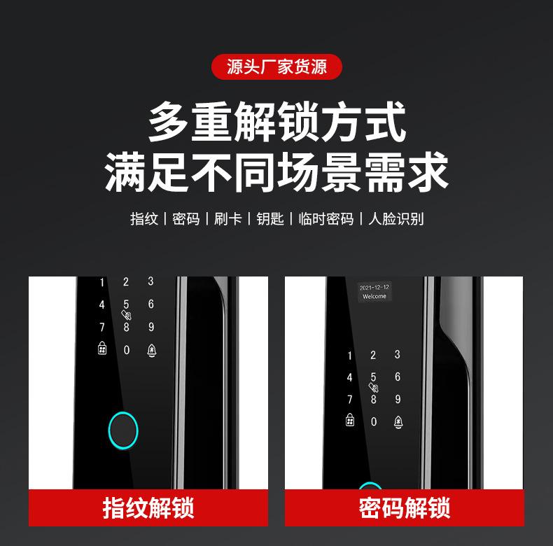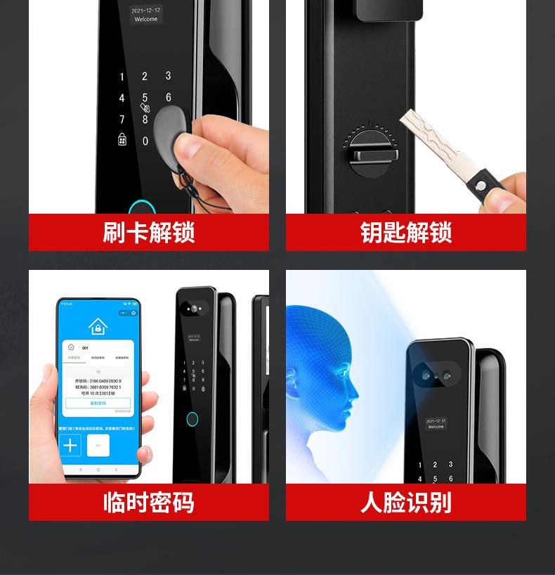 Fingerprint, Password, With key, visible cat's eye, face recognition, Remote Unlock