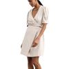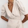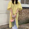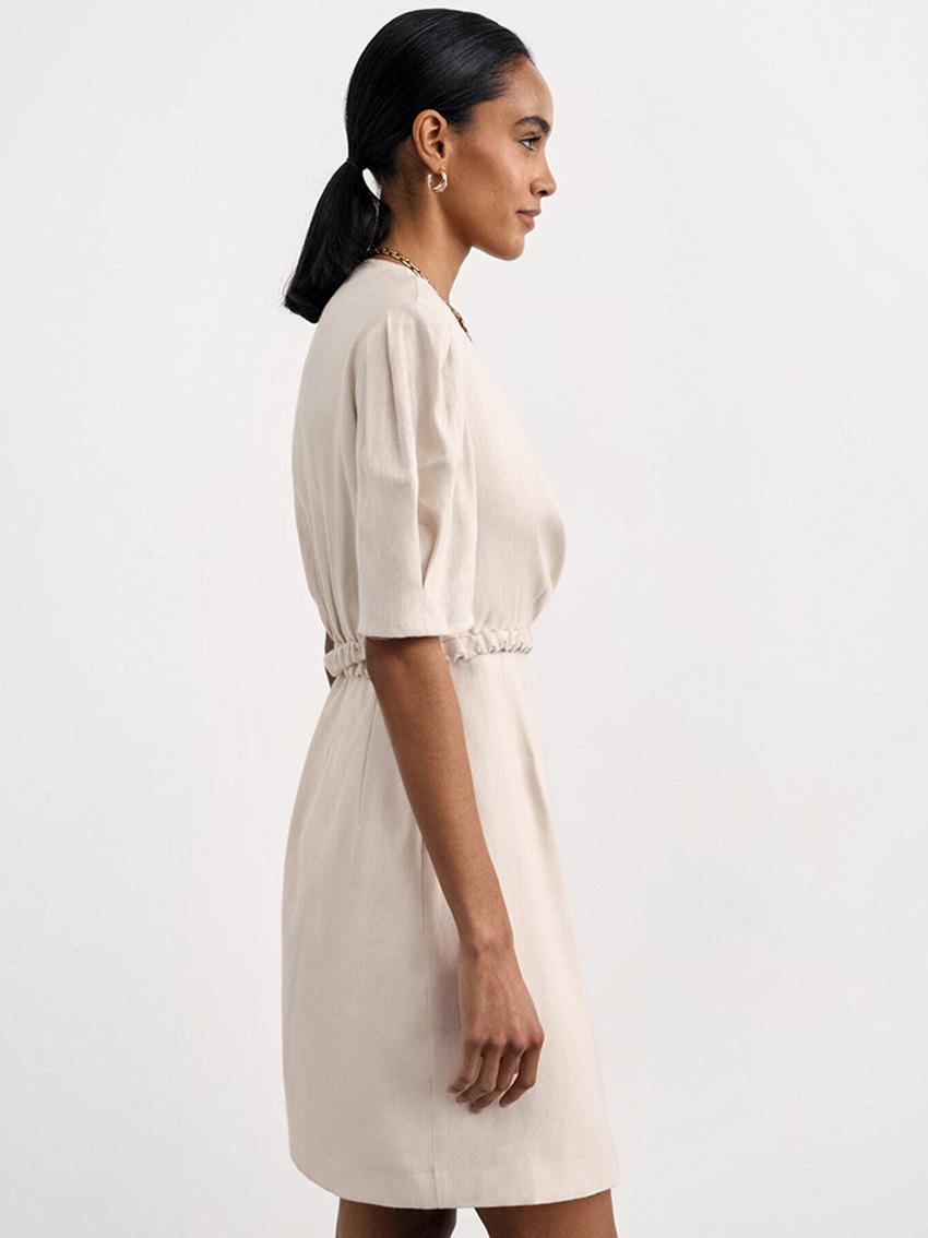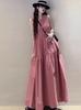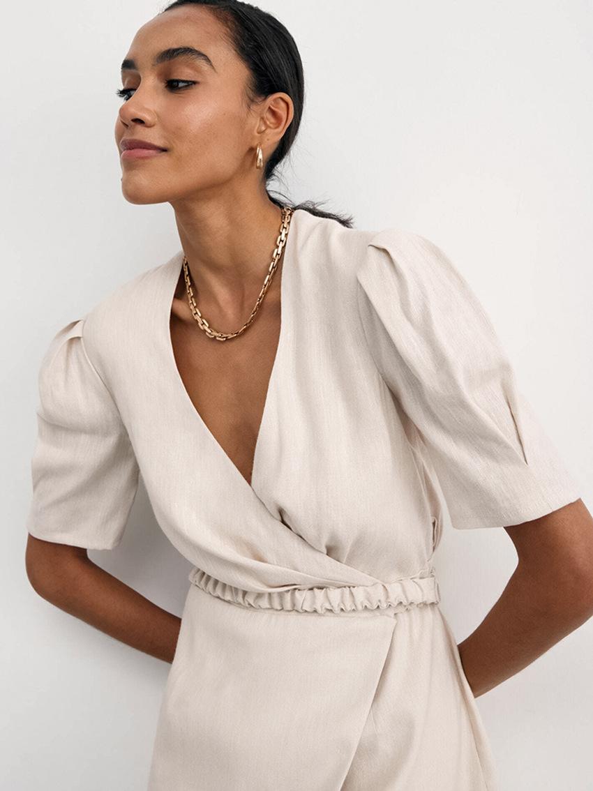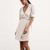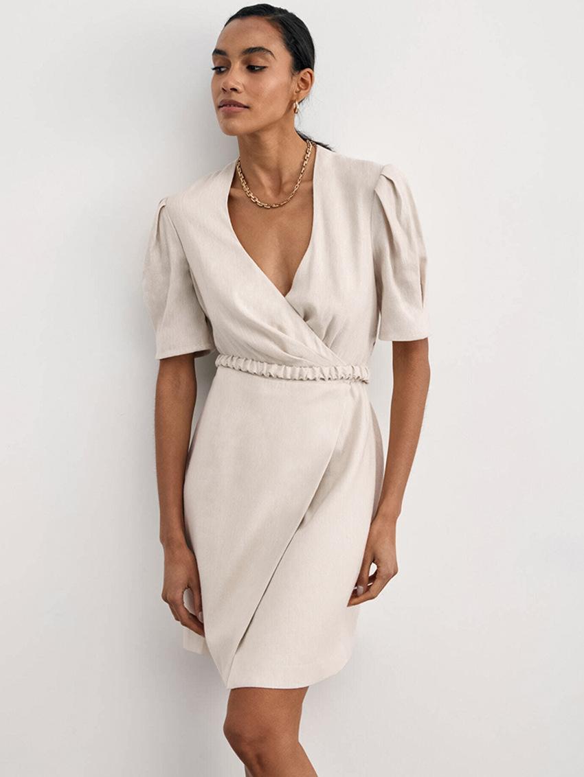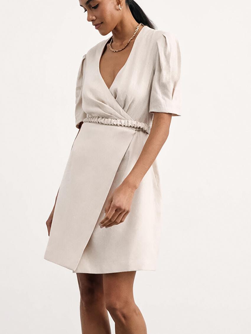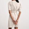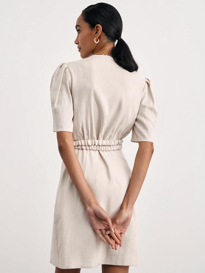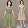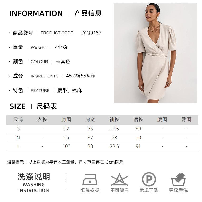 Vestido de primavera y verano de color liso con cinturón de algodón y lino de estilo europeo y americano, nuevo estilo nicho, falda corta de manga corta, temperamento femenino para viajeros