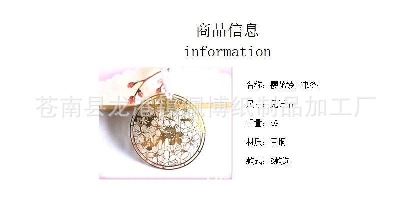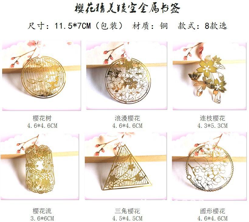 Serie Sakura de Metal Marcador Hueco Estilo Chino Creativo Pequeño Mini Romántico Hueco Metal Clip para Libro