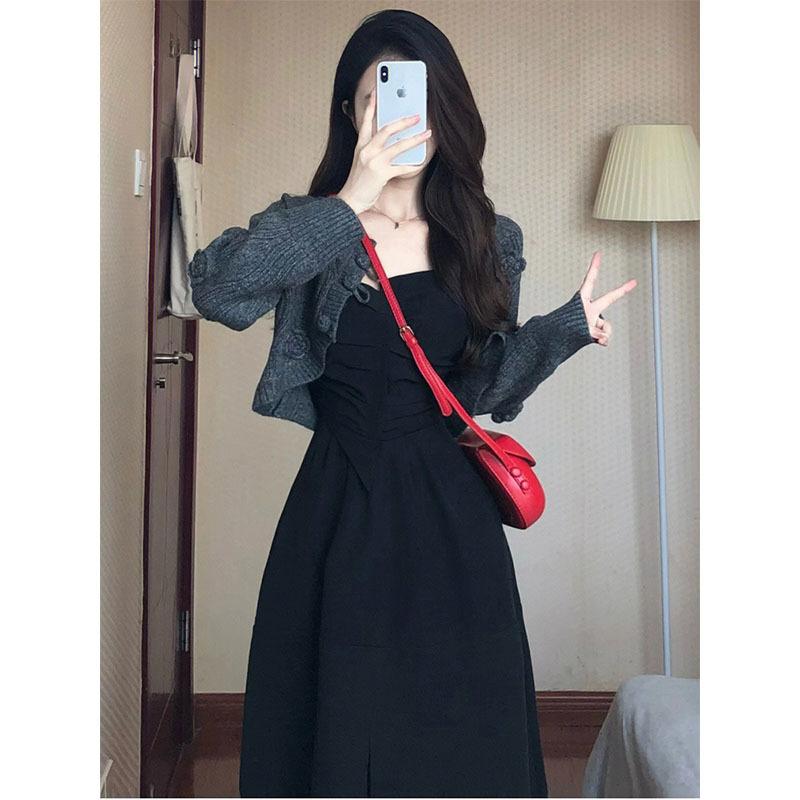 Verano Mujer 2025 Nuevo Elegante Falda Larga Francés Platycodon Tirantes Traje de Dos Piezas de Alta Gama Vestido