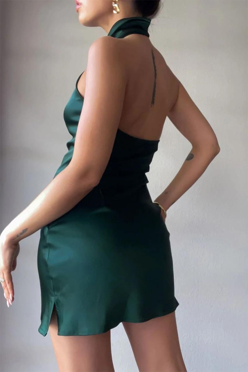 Falda colgante de satén para mujer, estilo europeo y americano, sexy, ajustada, sin mangas, con temperamento, a la moda, para verano de 2024
