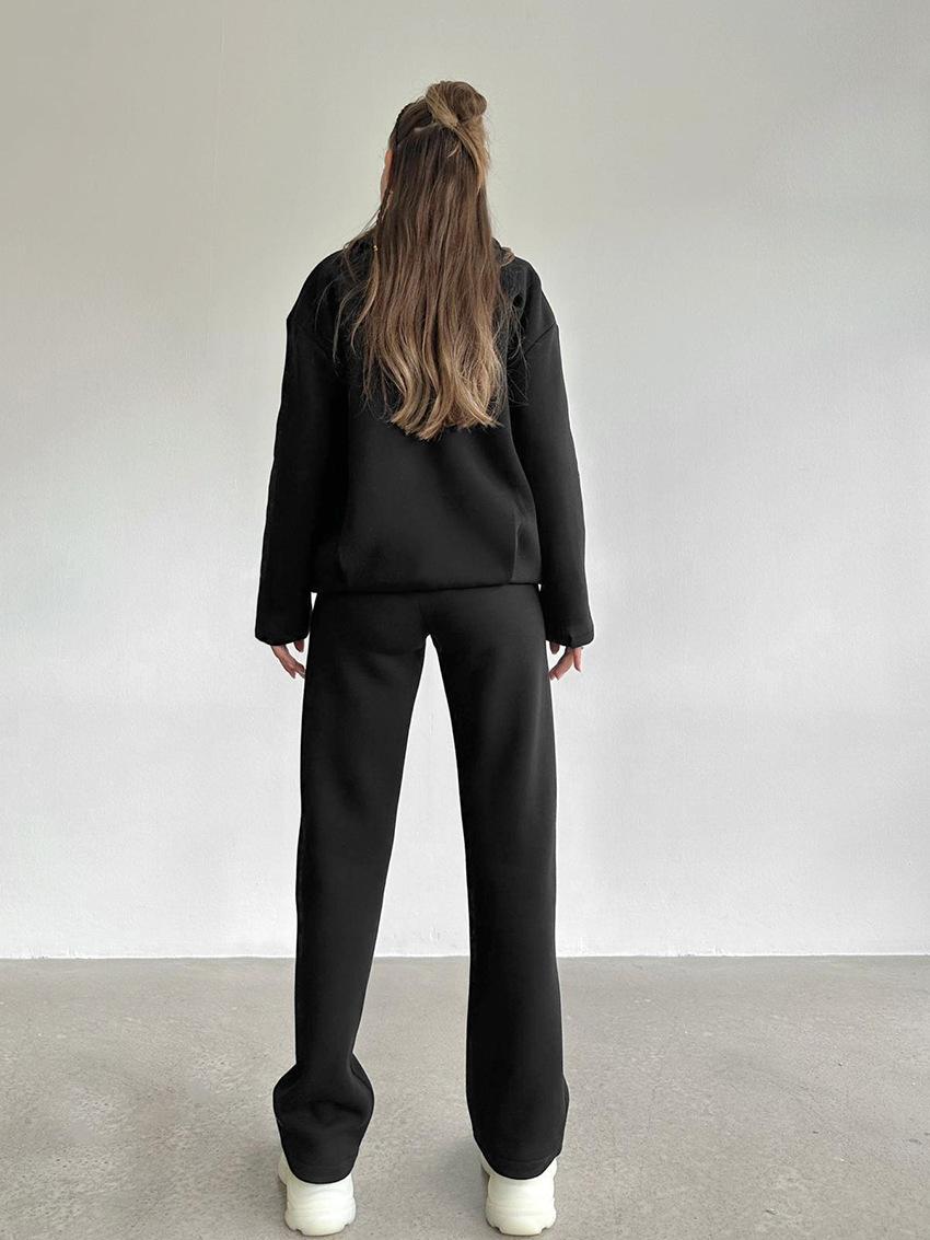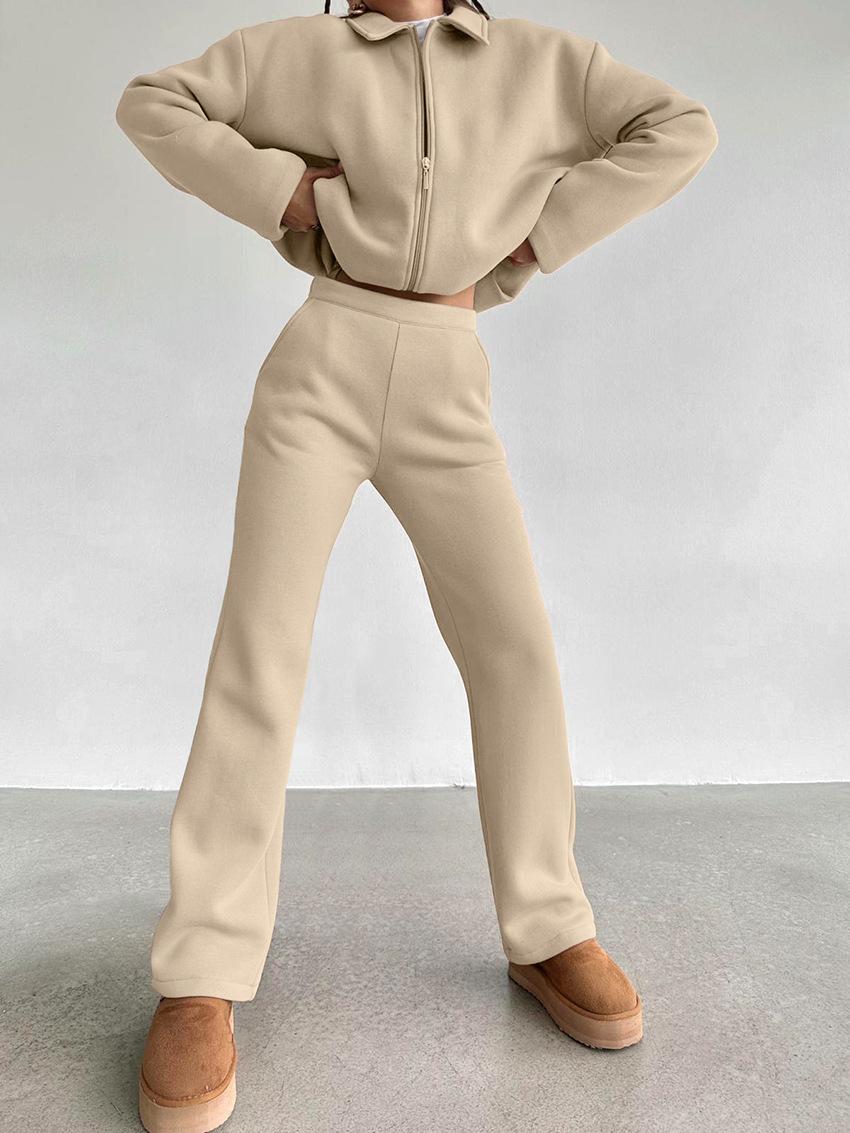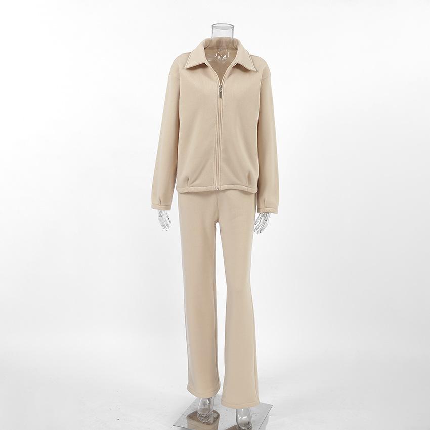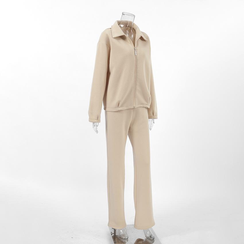 Otoño e invierno nuevo suéter de punto forrado de vellón pantalones rectos de cintura alta conjunto de dos piezas traje 2023 Amazon deportes viajero mujeres