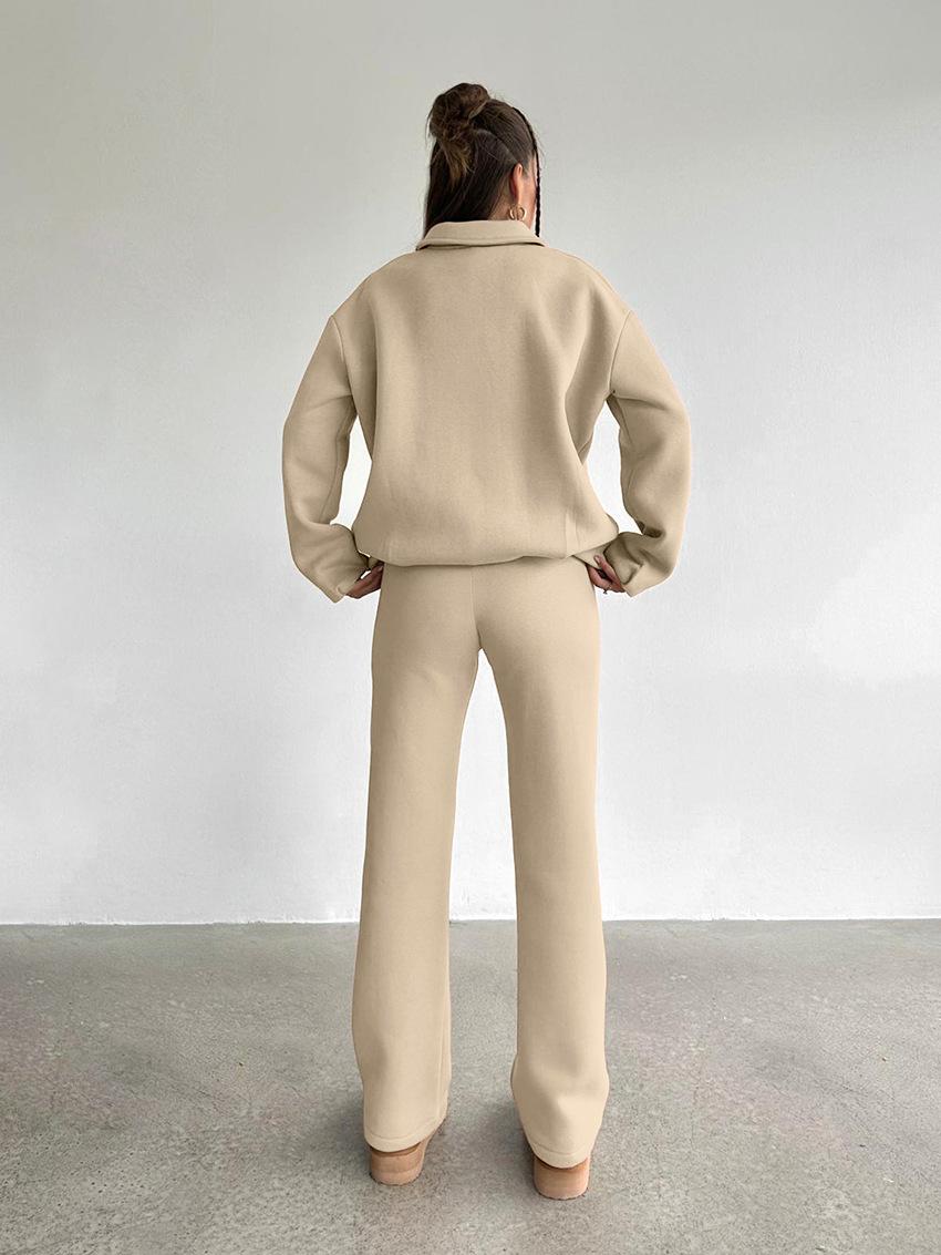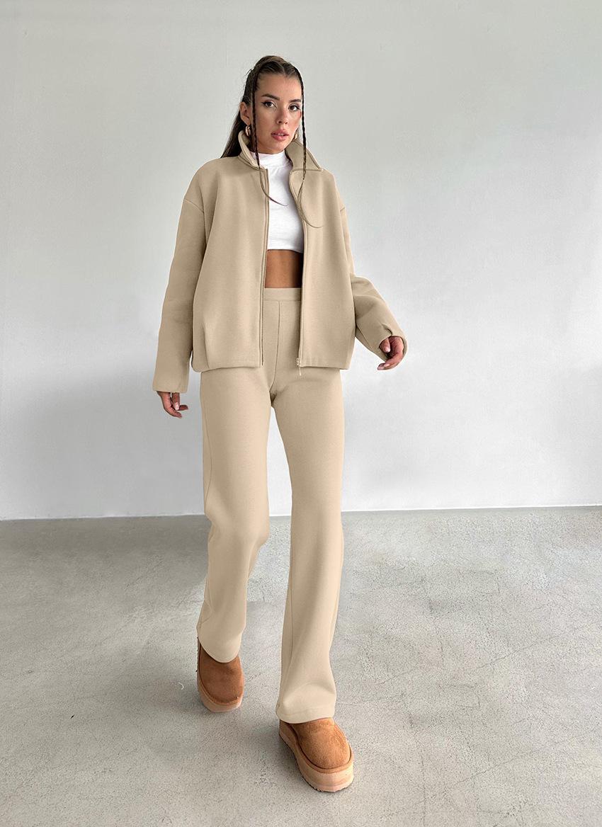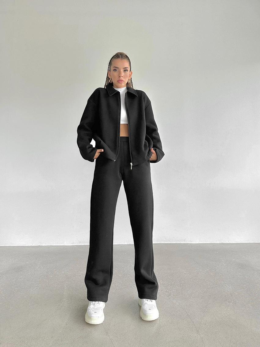 Otoño e invierno nuevo suéter de punto forrado de vellón pantalones rectos de cintura alta conjunto de dos piezas traje 2023 Amazon deportes viajero mujeres