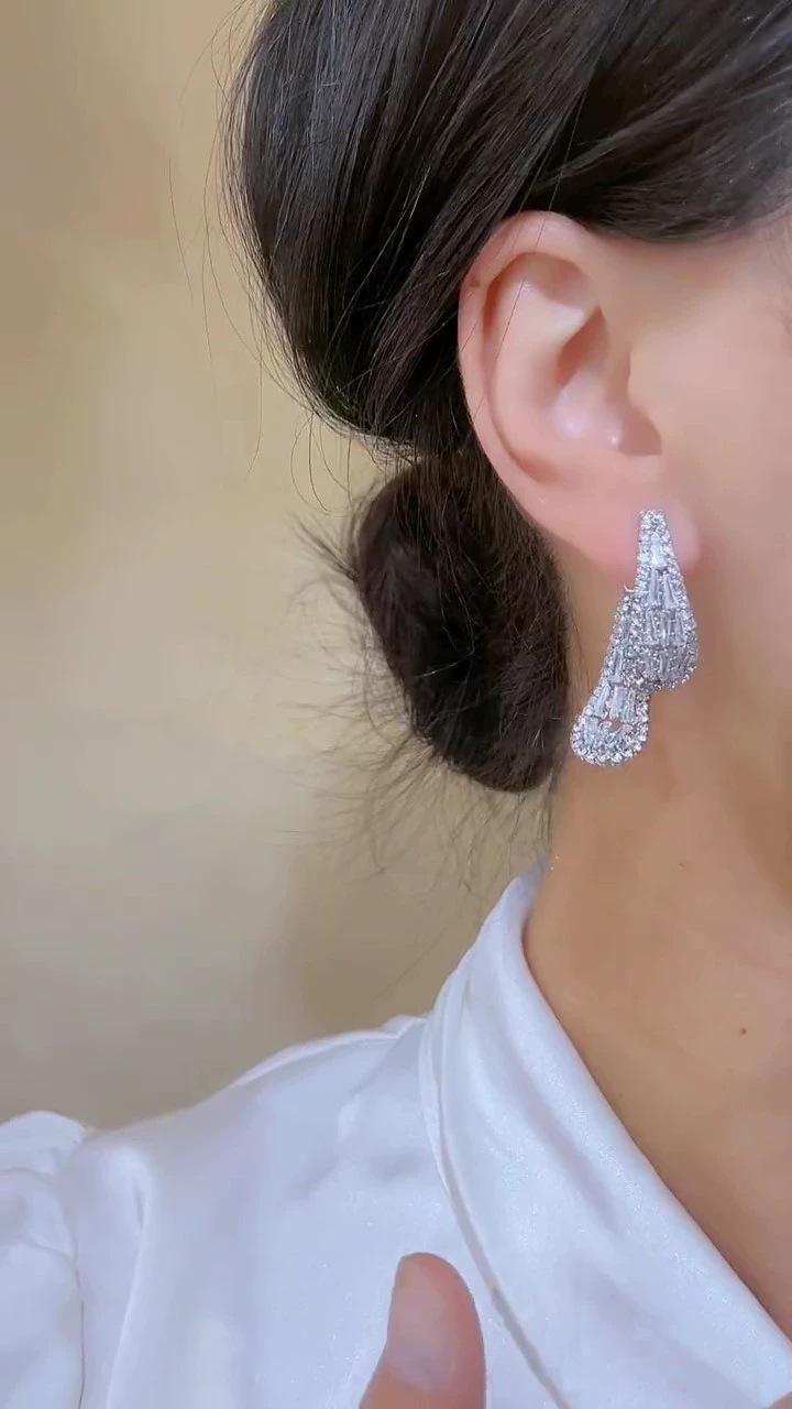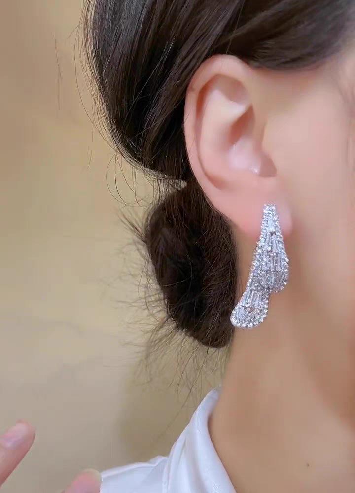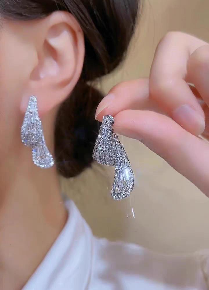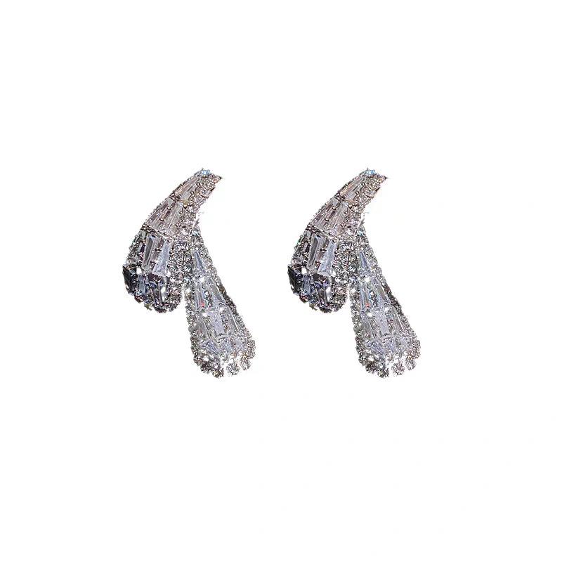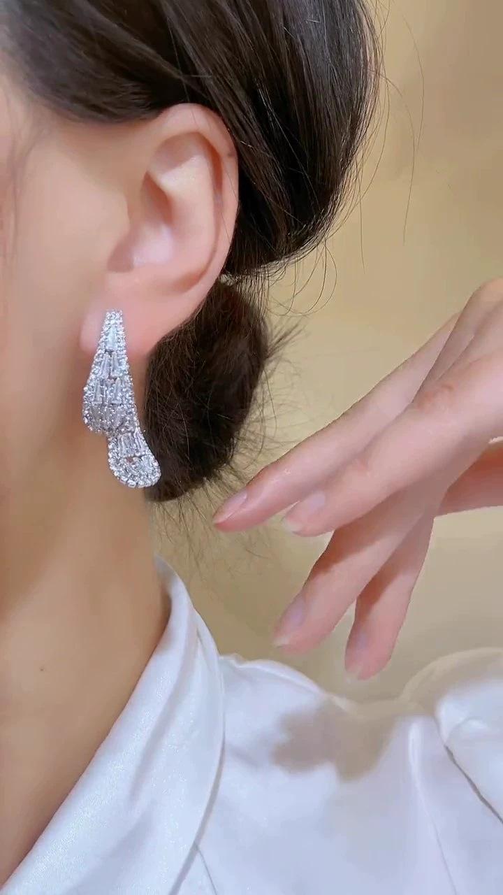 Pendientes de aguja de plata con circonita y diamantes de imitación, de lujo, de alta calidad, con forma de gota de agua, a la moda, combinables con todo.