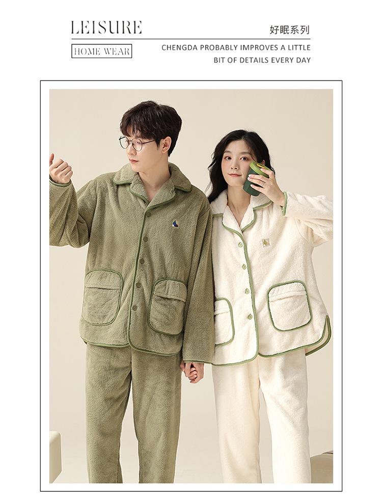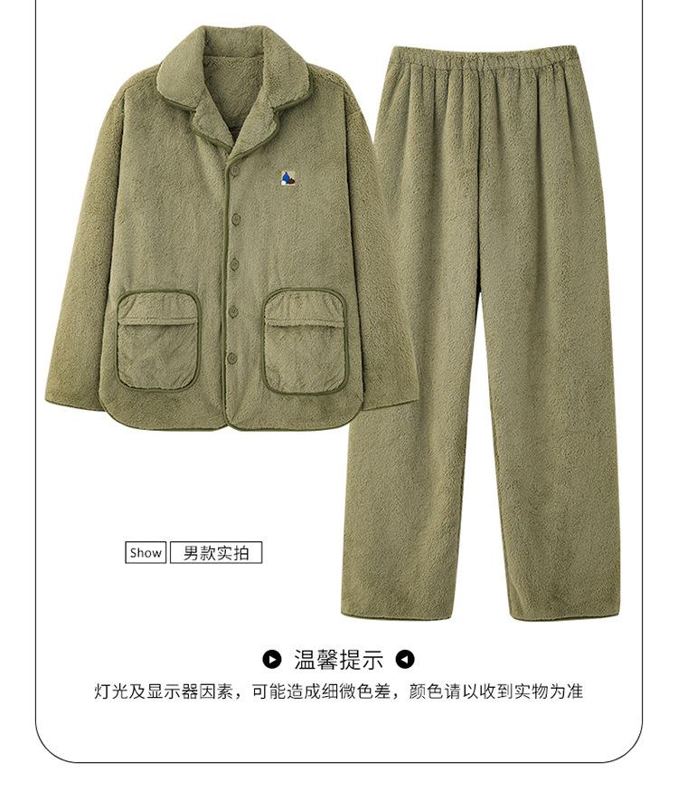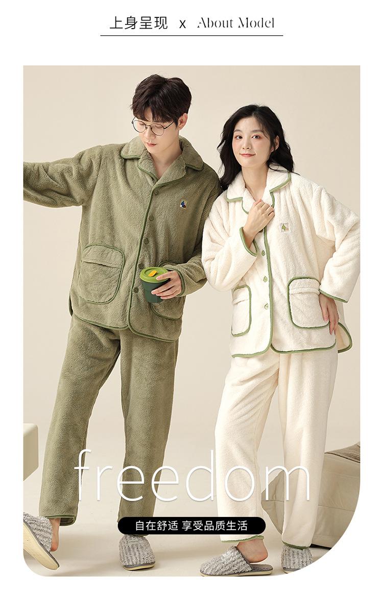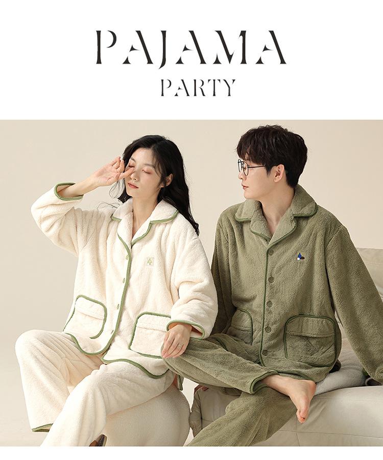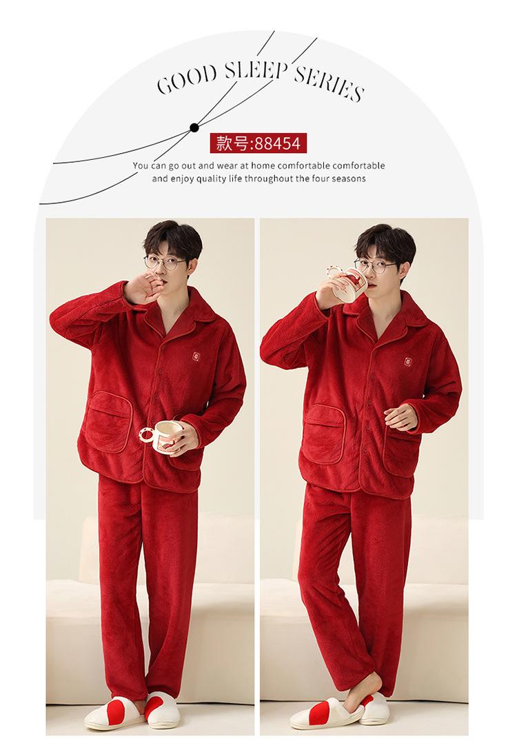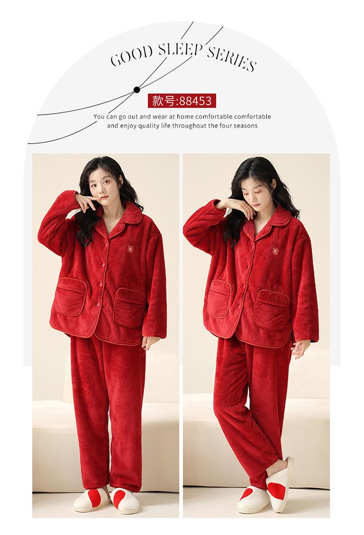 Pijamas de pareja otoño e invierno de forro polar coral de invierno para mujer, franela gruesa con forro polar para hombre, estilo rojo en línea, ropa de casa, traje