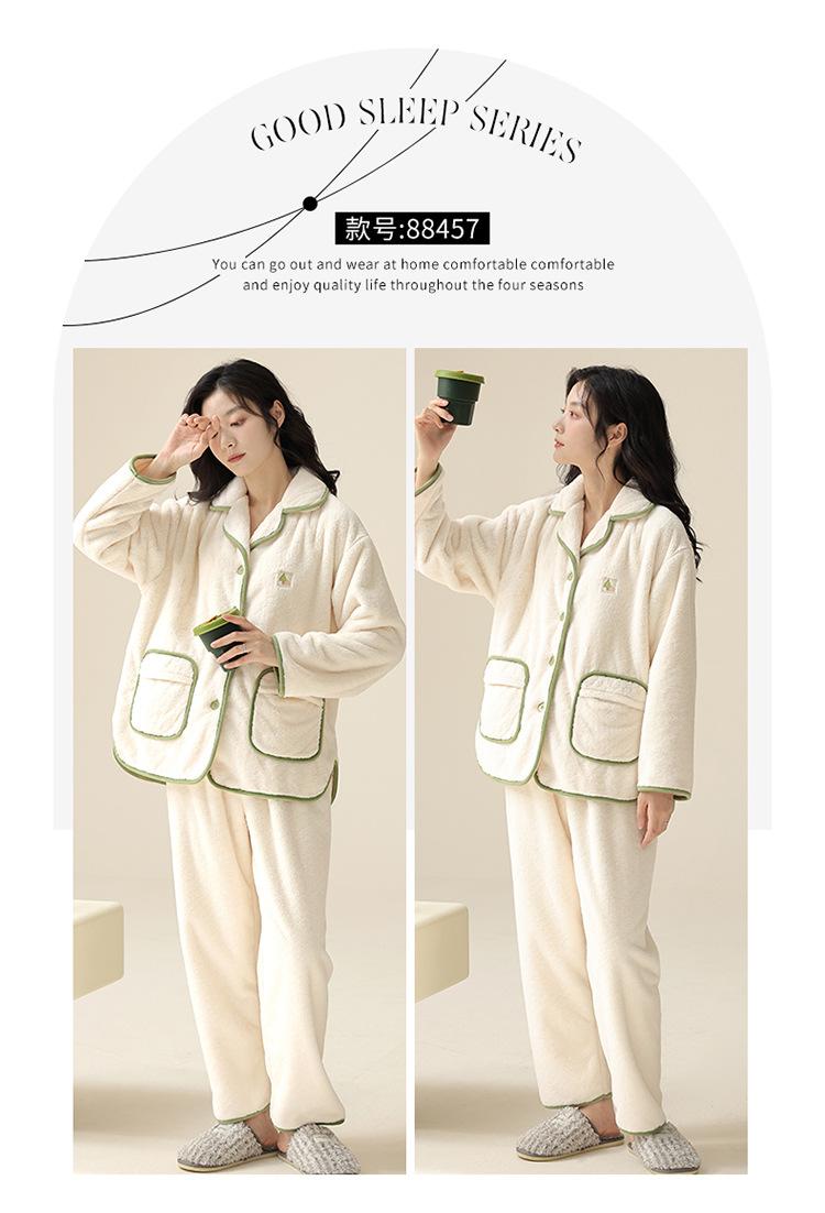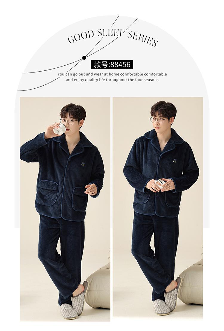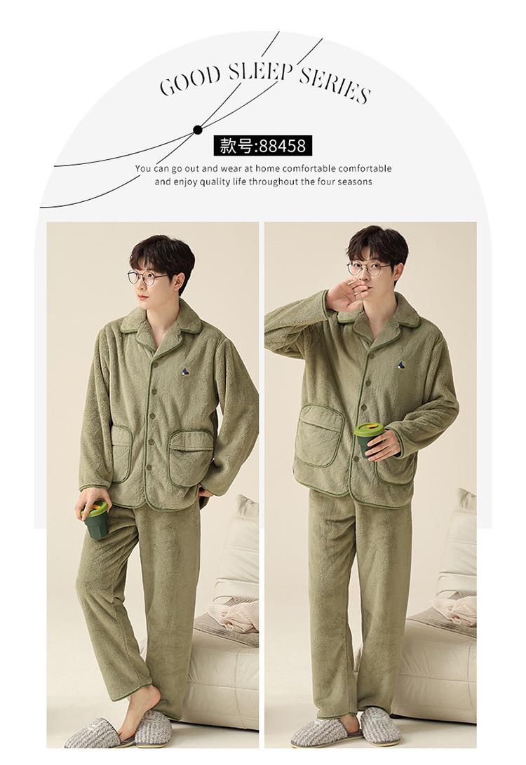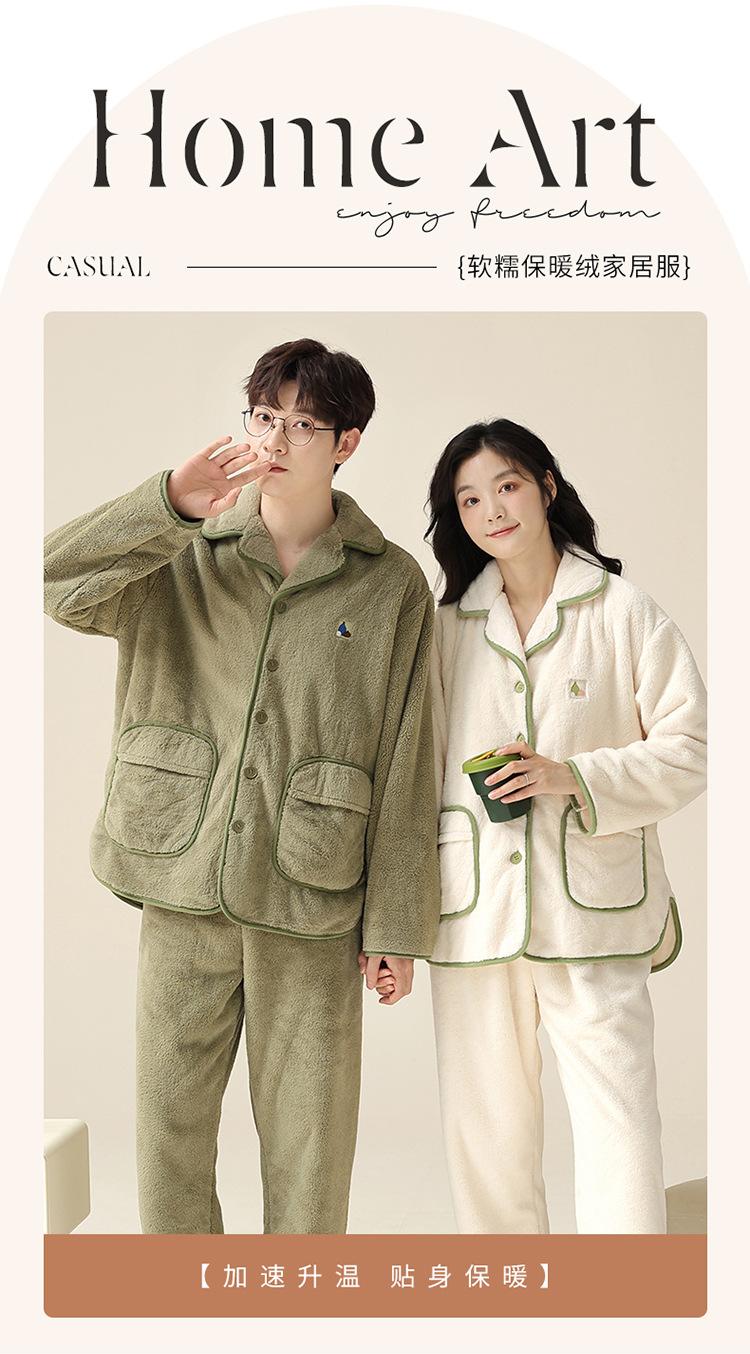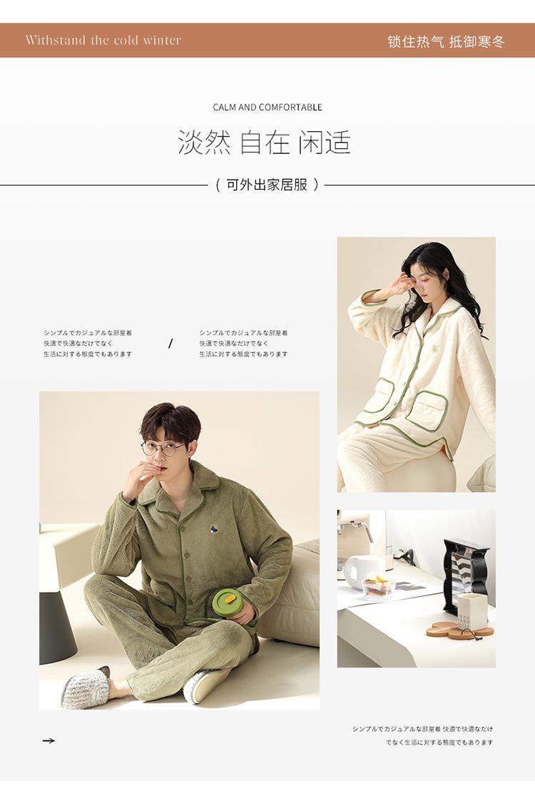 Pijamas de pareja otoño e invierno de forro polar coral de invierno para mujer, franela gruesa con forro polar para hombre, estilo rojo en línea, ropa de casa, traje