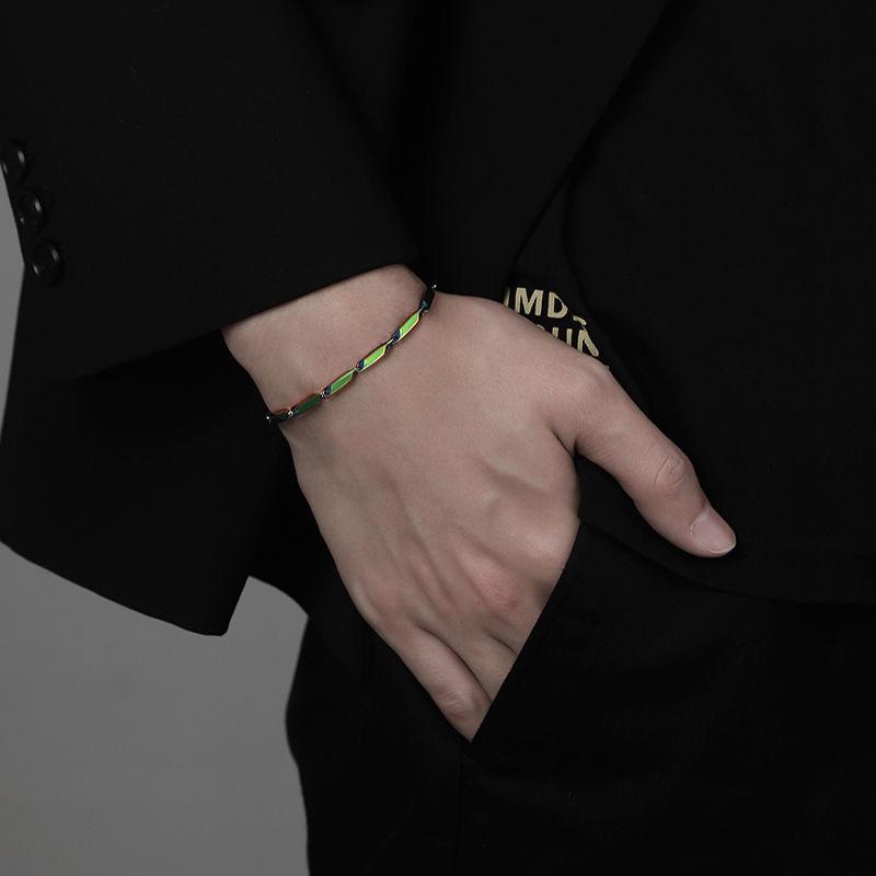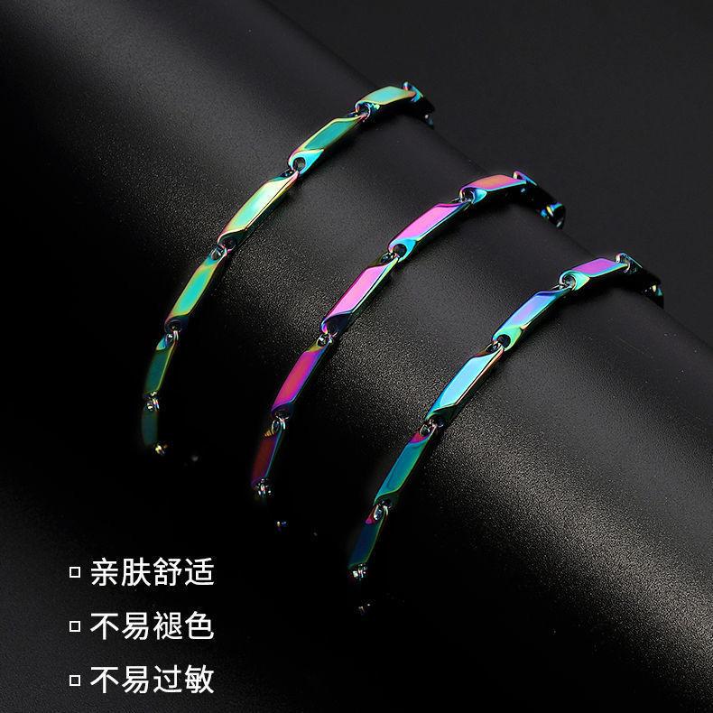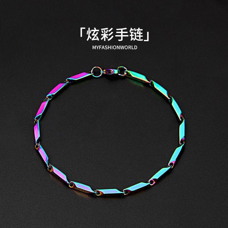 Pulsera de moda para hombre de acero de titanio arcoíris, cadena de hoja de bambú templada, pulsera Joker de moda para hombres y mujeres al por mayor, una generación de cabello