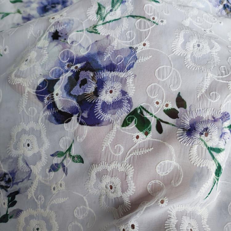 Este es 75D2400 tejido de gasa torcida blanco con bordado, tejido de impresión digital. Las especificaciones y colores del tejido base se pueden seleccionar de los colores en stock en la tienda. Hay una variedad de patrones para elegir, por favor contacte al servicio al cliente. También se puede personalizar según el color y el patrón proporcionados por el cliente.