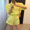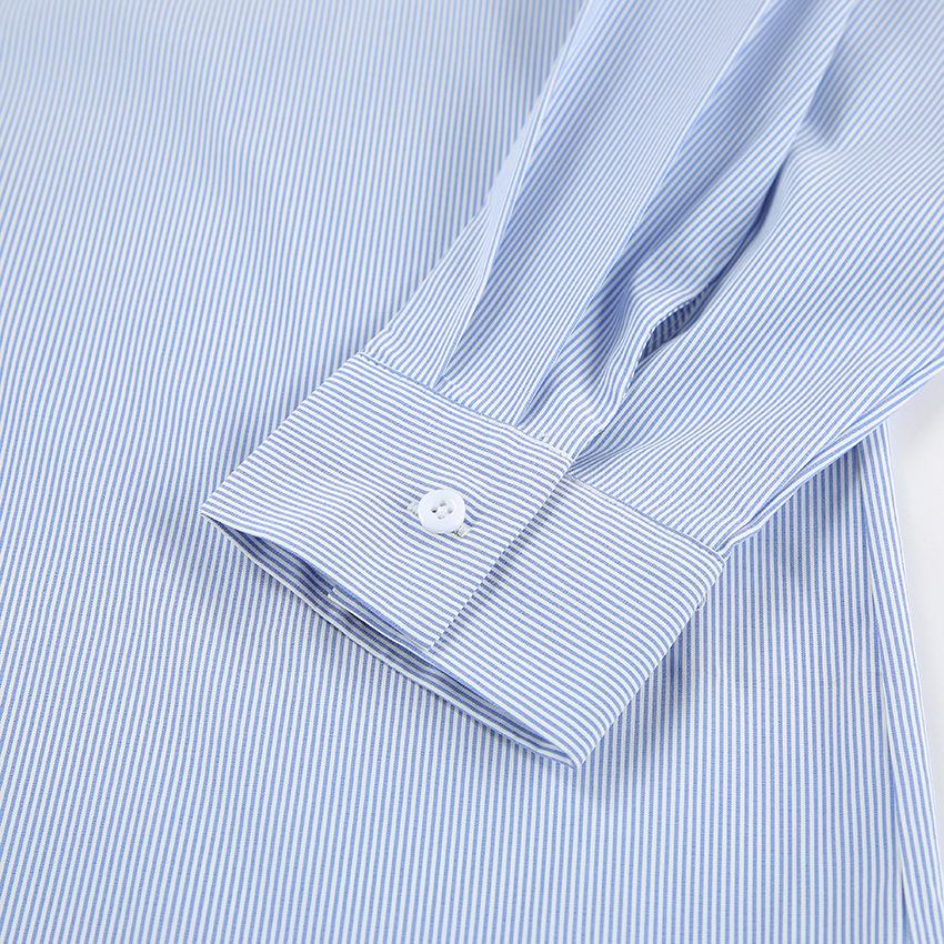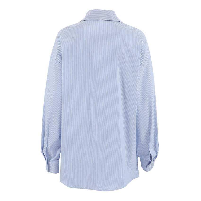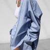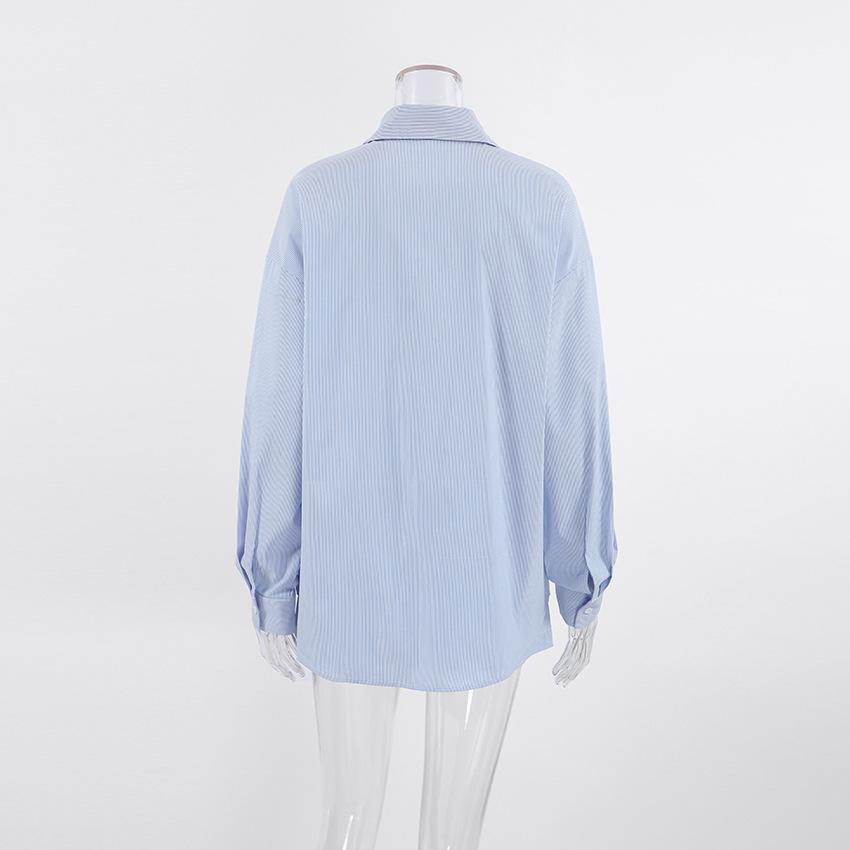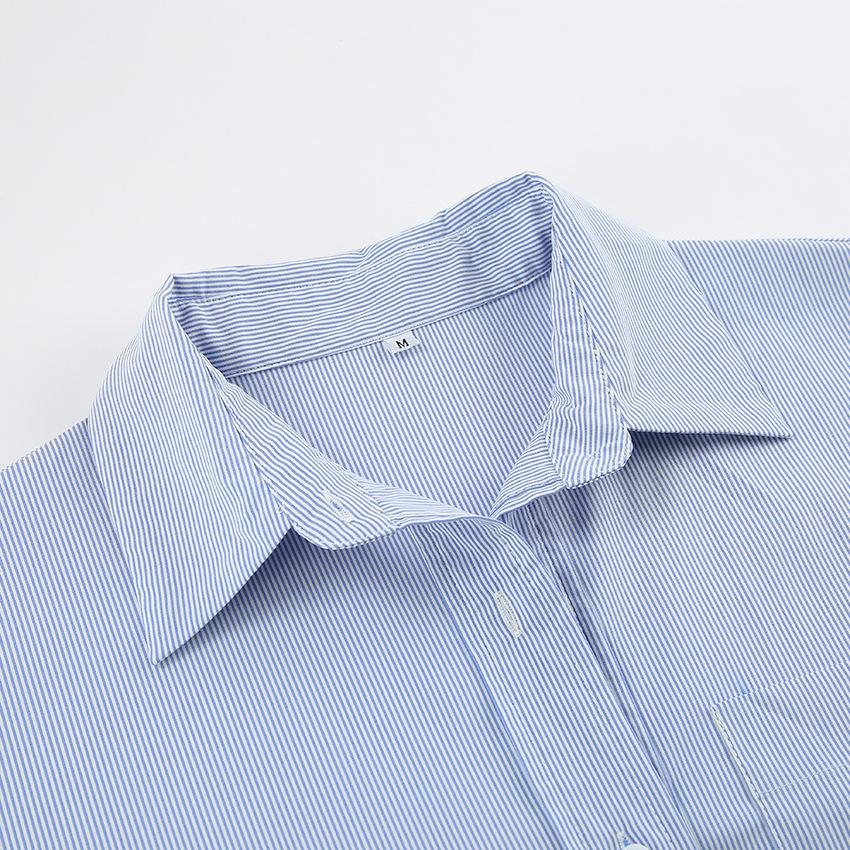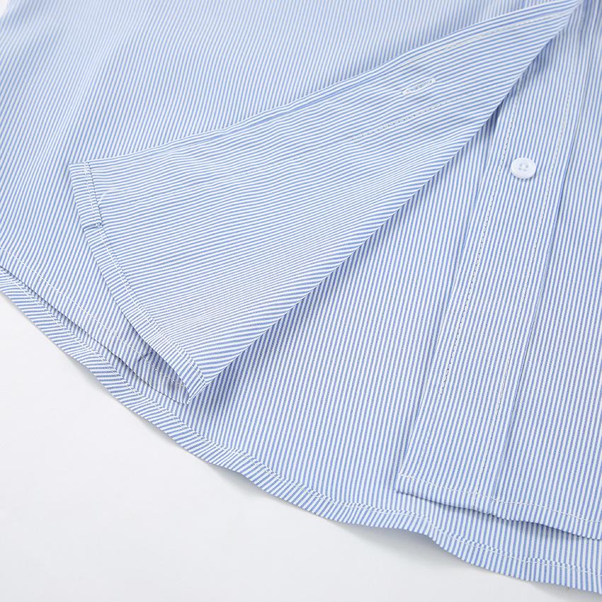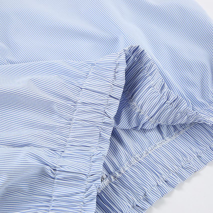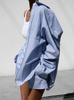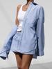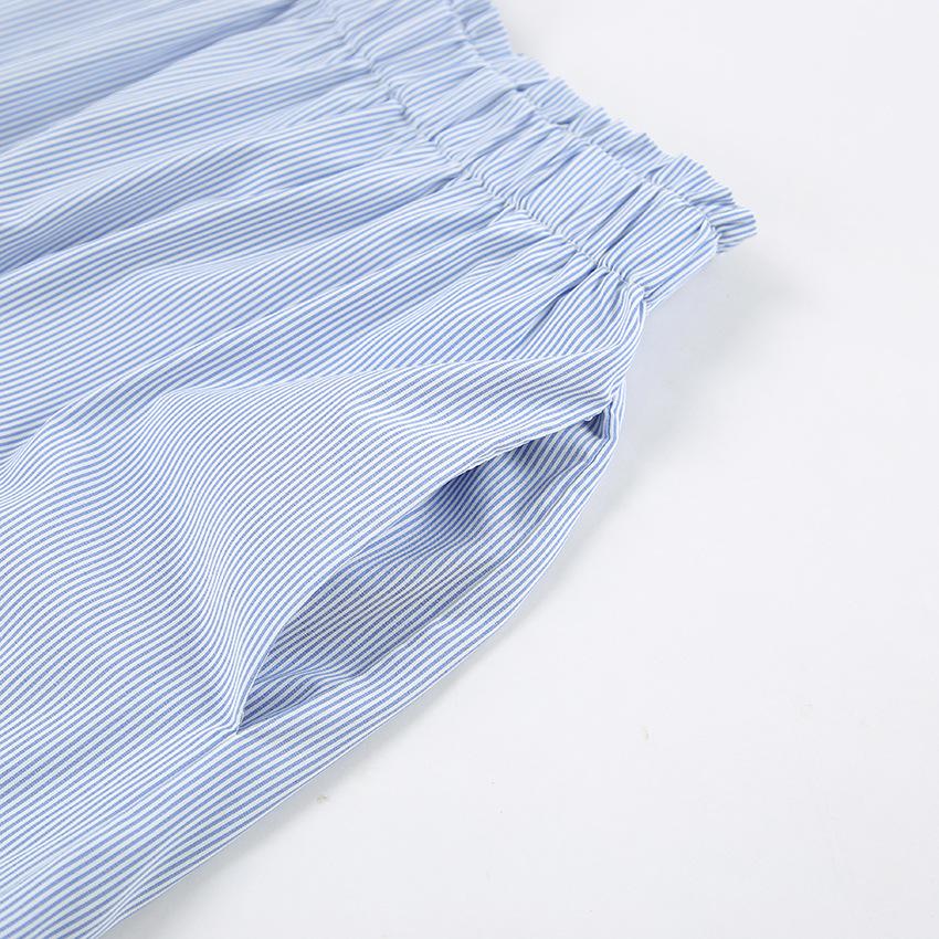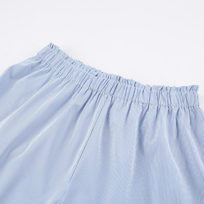 Conjunto de camisa de manga larga a rayas azules con pantalones cortos de cintura elástica, moda casual, estilo europeo y americano, otoño nuevo 2023 transfronterizo