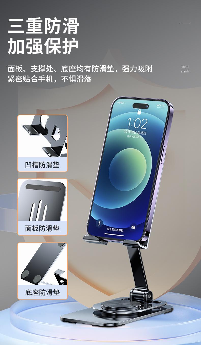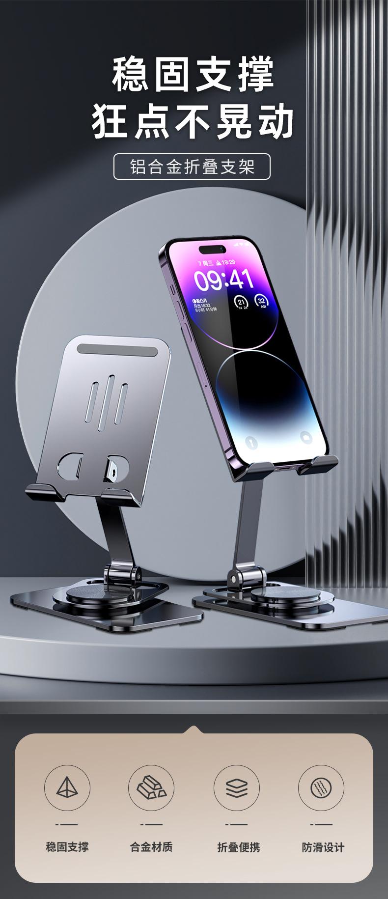 Soporte giratorio de aleación de aluminio para teléfono móvil, soporte multifuncional para tableta de escritorio, soporte plegable para teléfono móvil con elevación en vivo