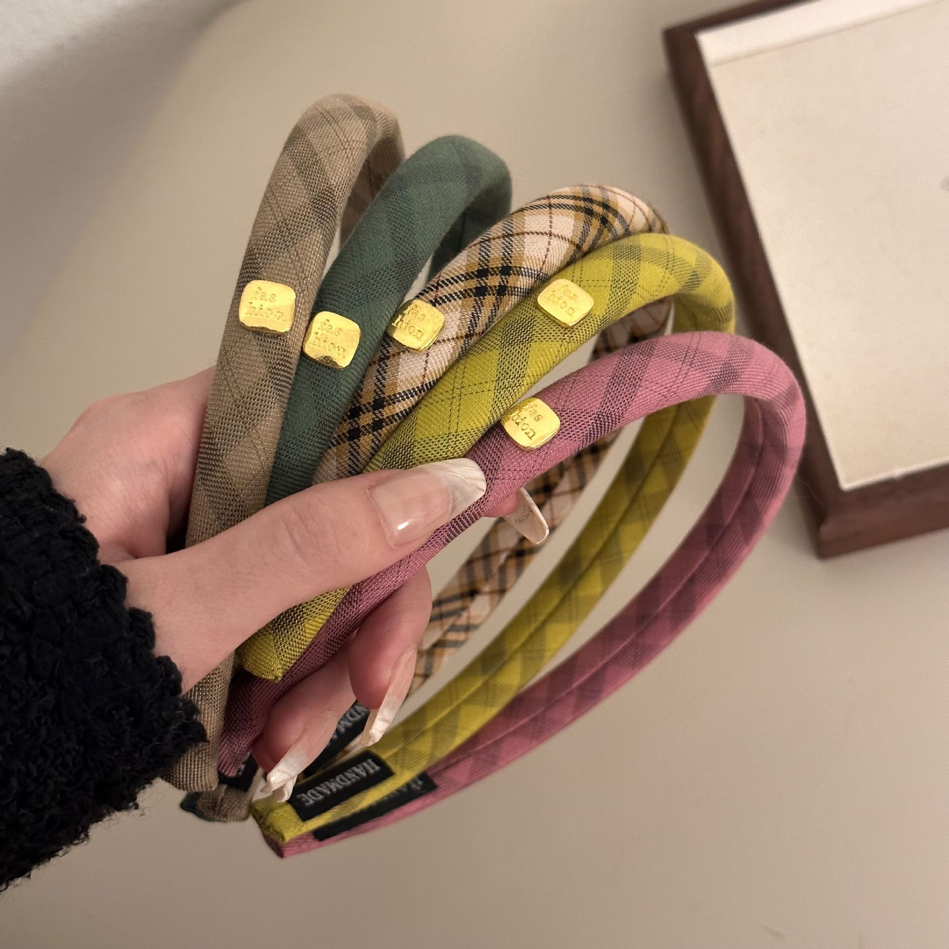 Diadema fina de lujo ligero retro a cuadros estilo francés moda de alta gama diadema para lavar la cara con parte superior alta de cráneo horquilla adorno para la cabeza moda