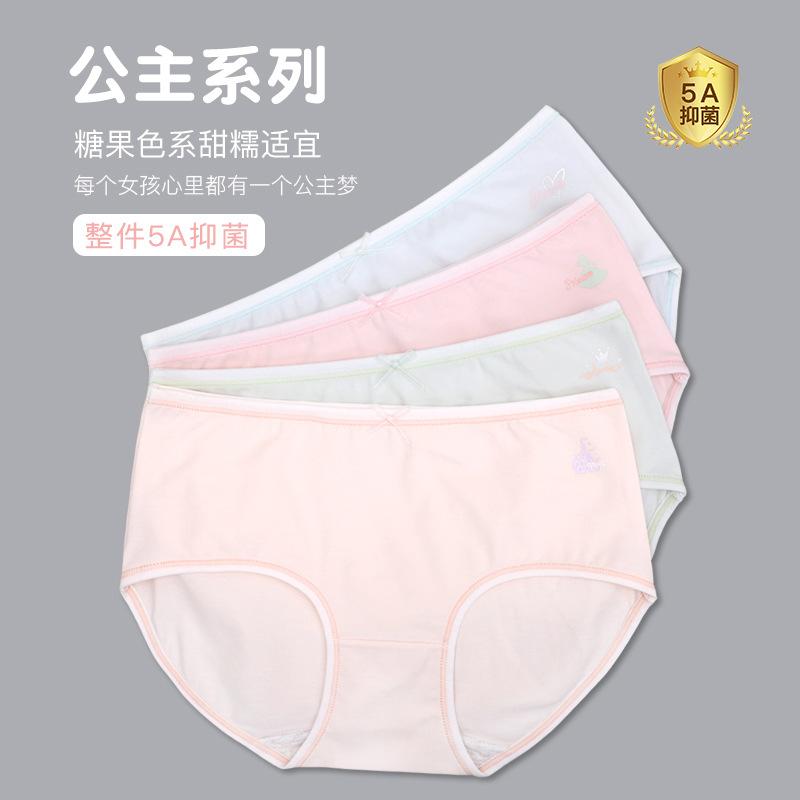 Braguitas Antibacteriales de Algodón Puro sin Costuras Transpirables de Cintura Media Estilo Japonés para Niñas
