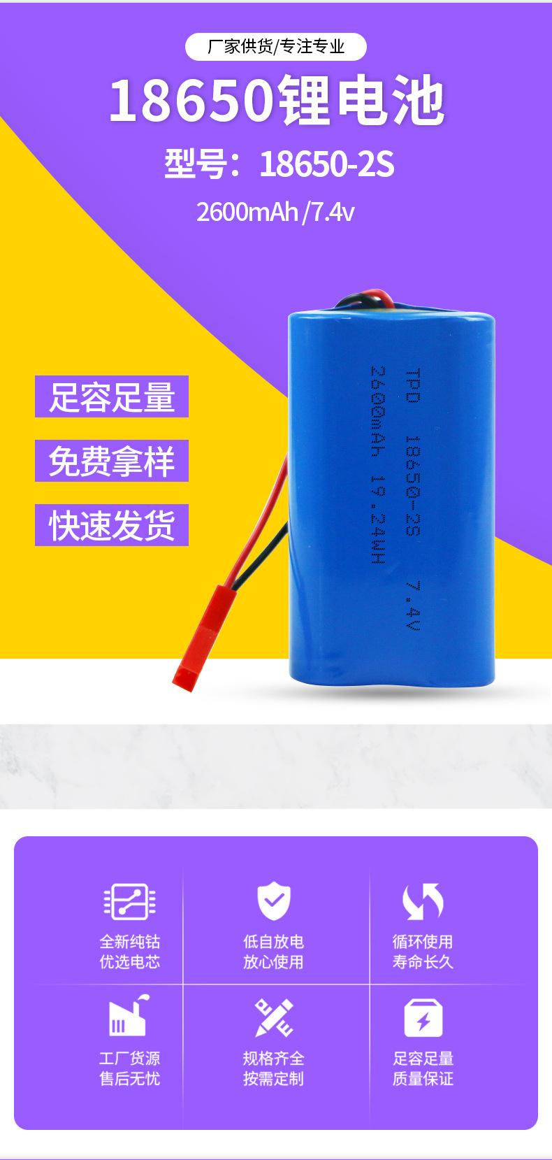 Paquete de baterías de litio 18650 7.4V2600mah alta tasa pistola de fascia energía móvil batería de alimentación para barco de anidación