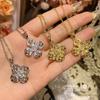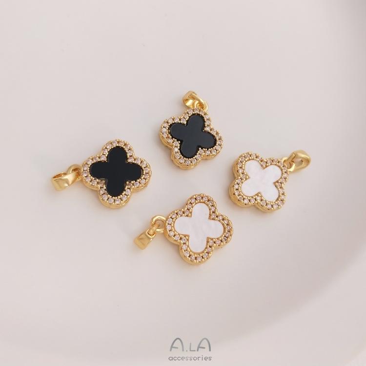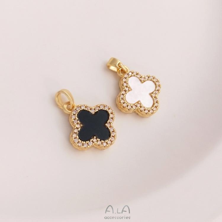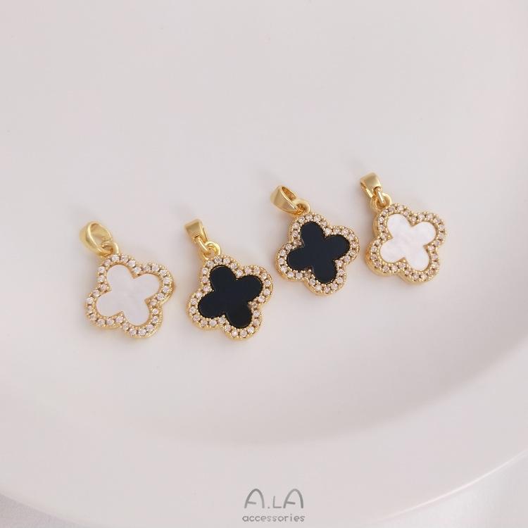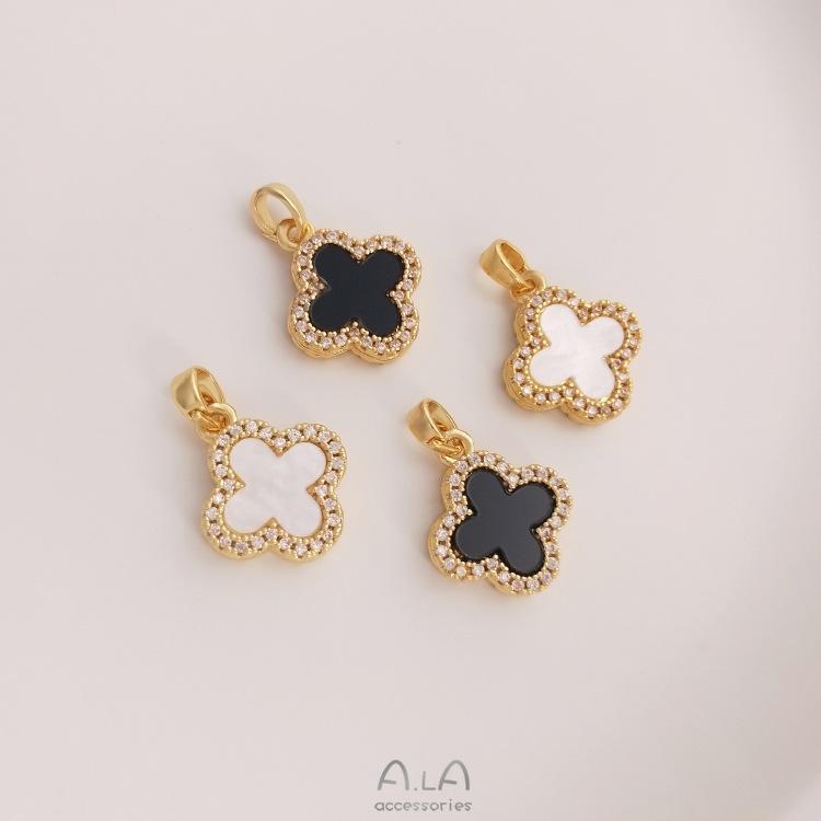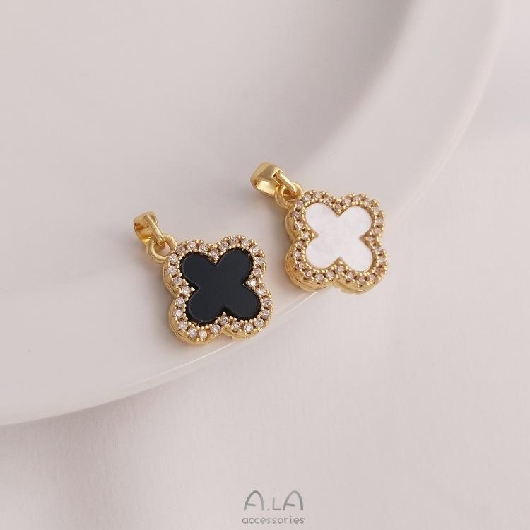Colgante con hebilla de semilla de melón y trébol de cuatro hojas con bisel de circón