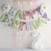 Cortina de seda con borlas y lluvia láser para niños, globos de un año, fondo de fiesta, decoración de pared con tiras de colores y flores para cumpleaños
