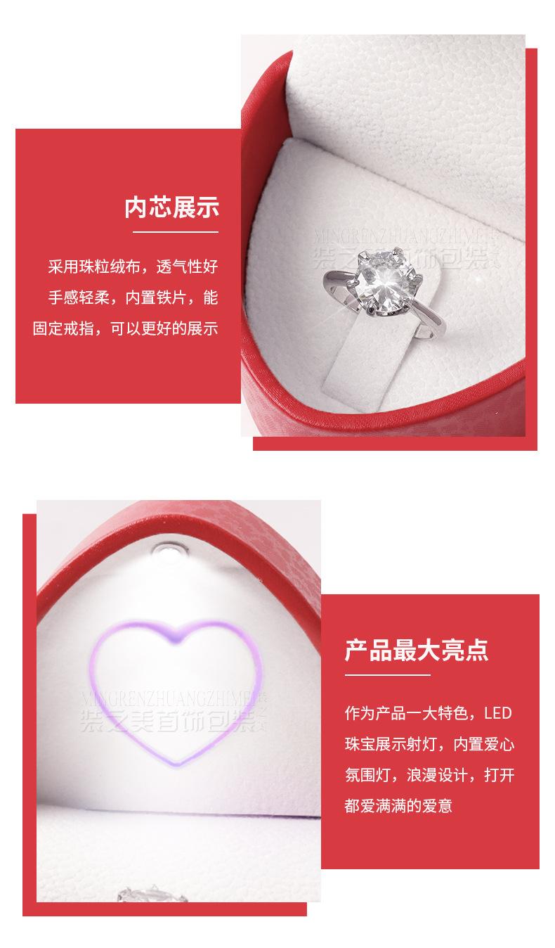 Caja de Joyería con Luz LED Love Caja para Anillo de Propuesta Caja de Joyería para Collar Caja de Joyería para Colgante Caja de Embalaje de Joyería