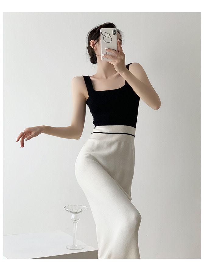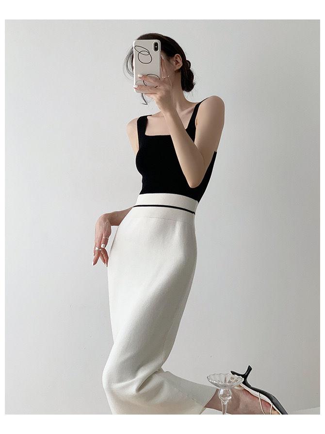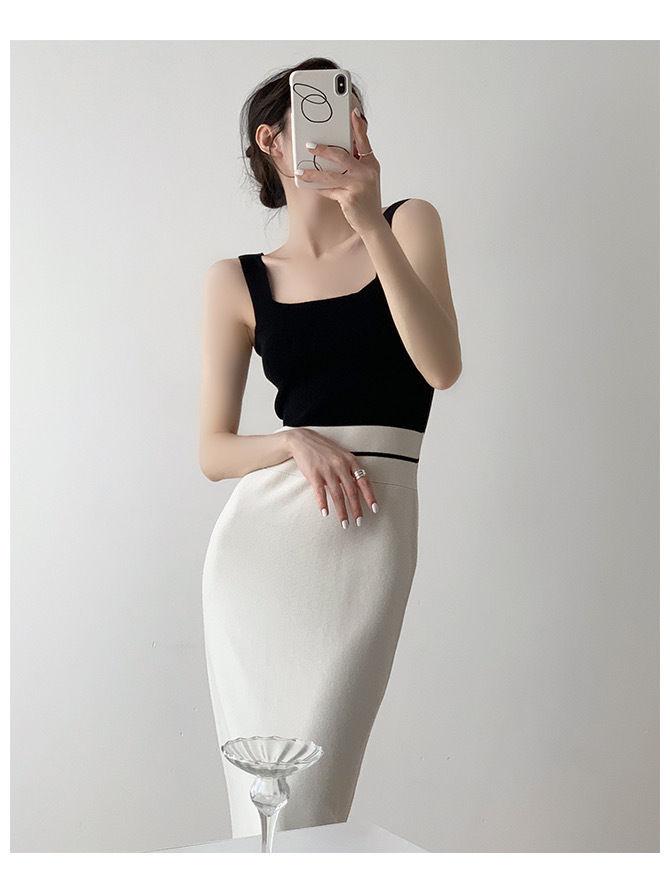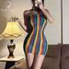 Vestido de punto con cuello colgante estilo Pure Desire para mujer, falda de verano con hombros descubiertos, sexy, ajustada, irregular, cruzada en la cadera