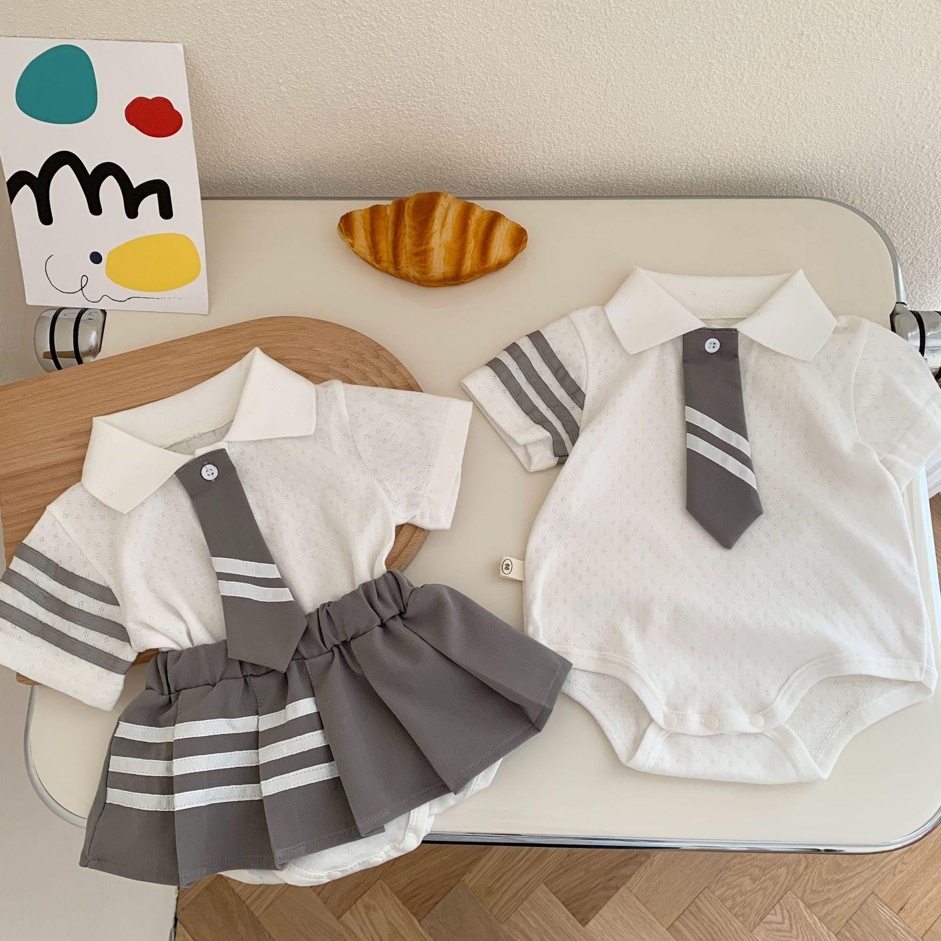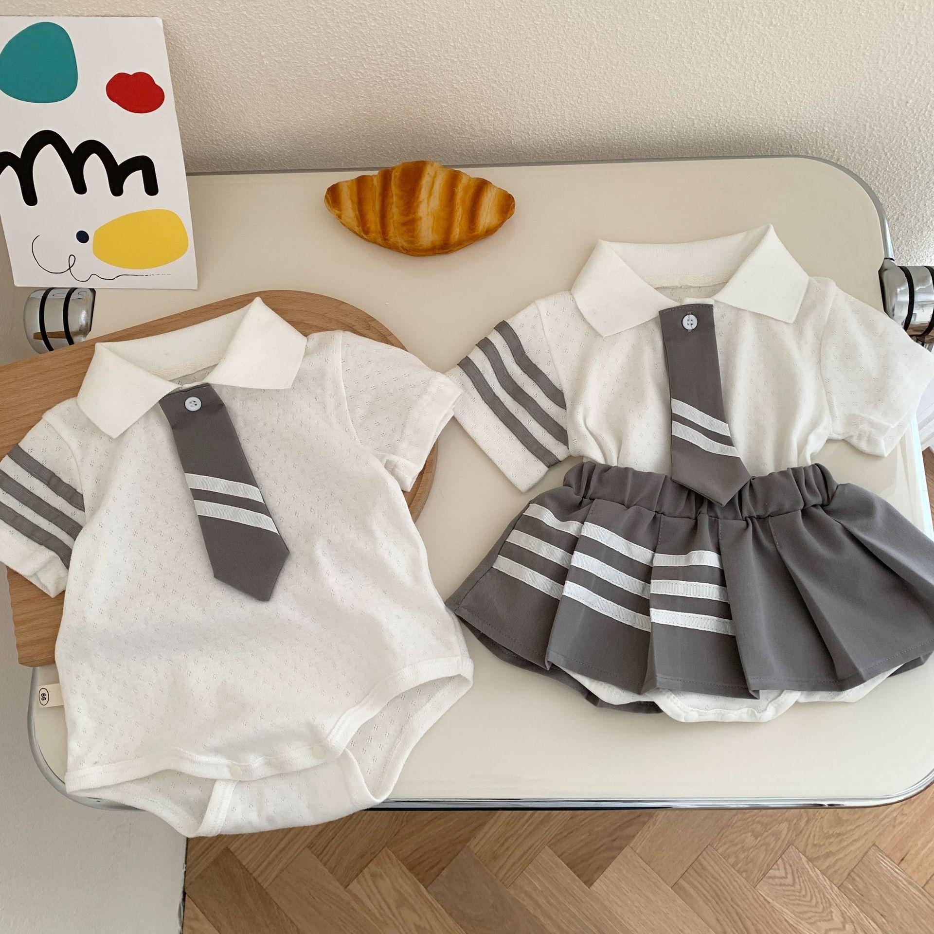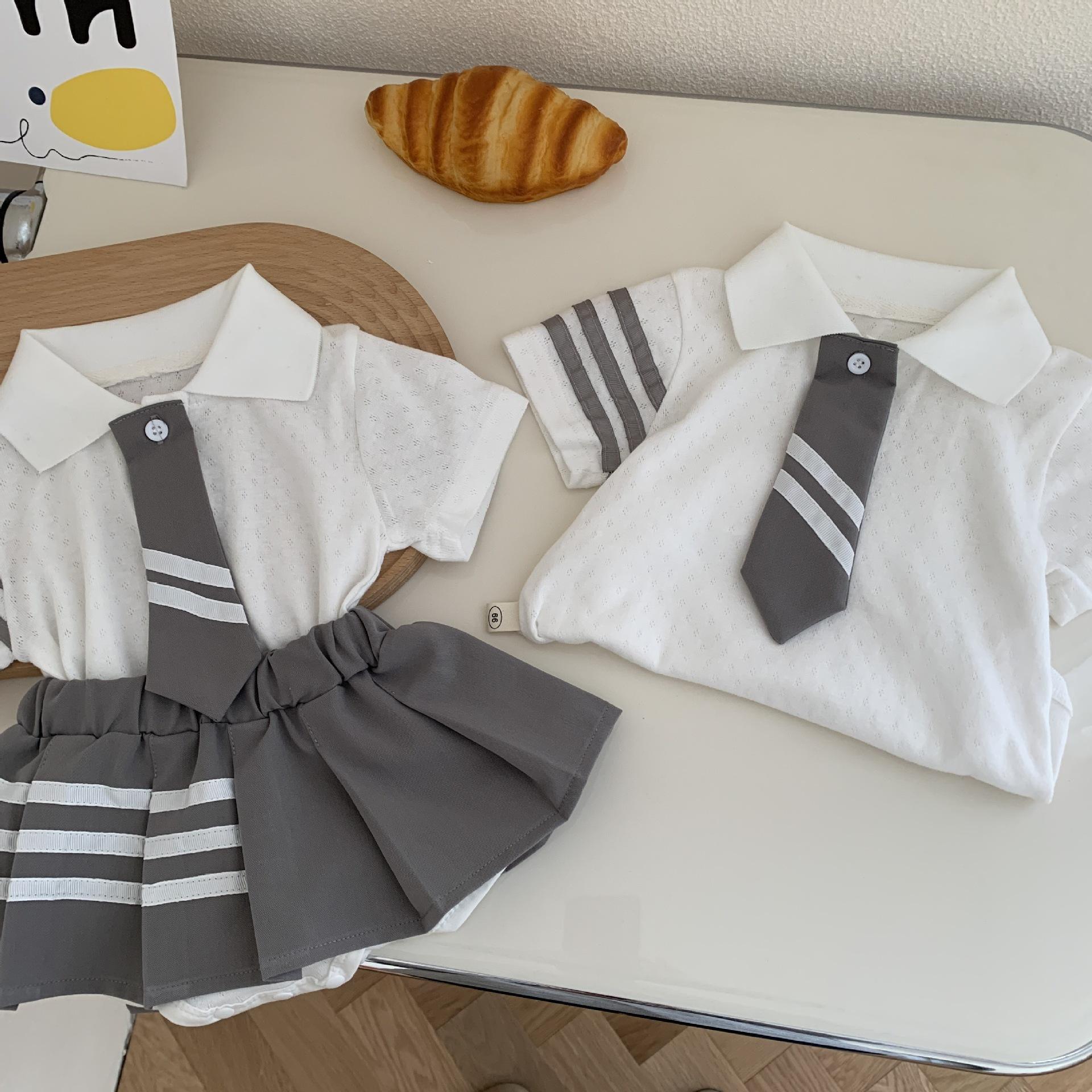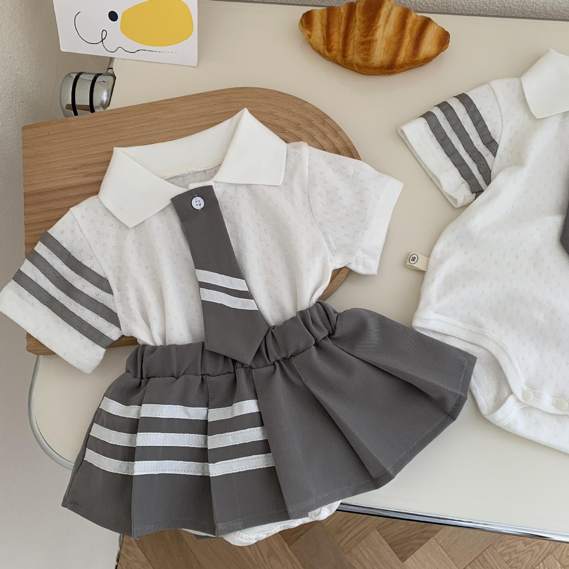 Envía un bolso estilo universitario para bebé, ropa de verano para bebés de 0 a 2 años, ropa de escalada popular en línea para hombres y mujeres, vestido de un año ML956