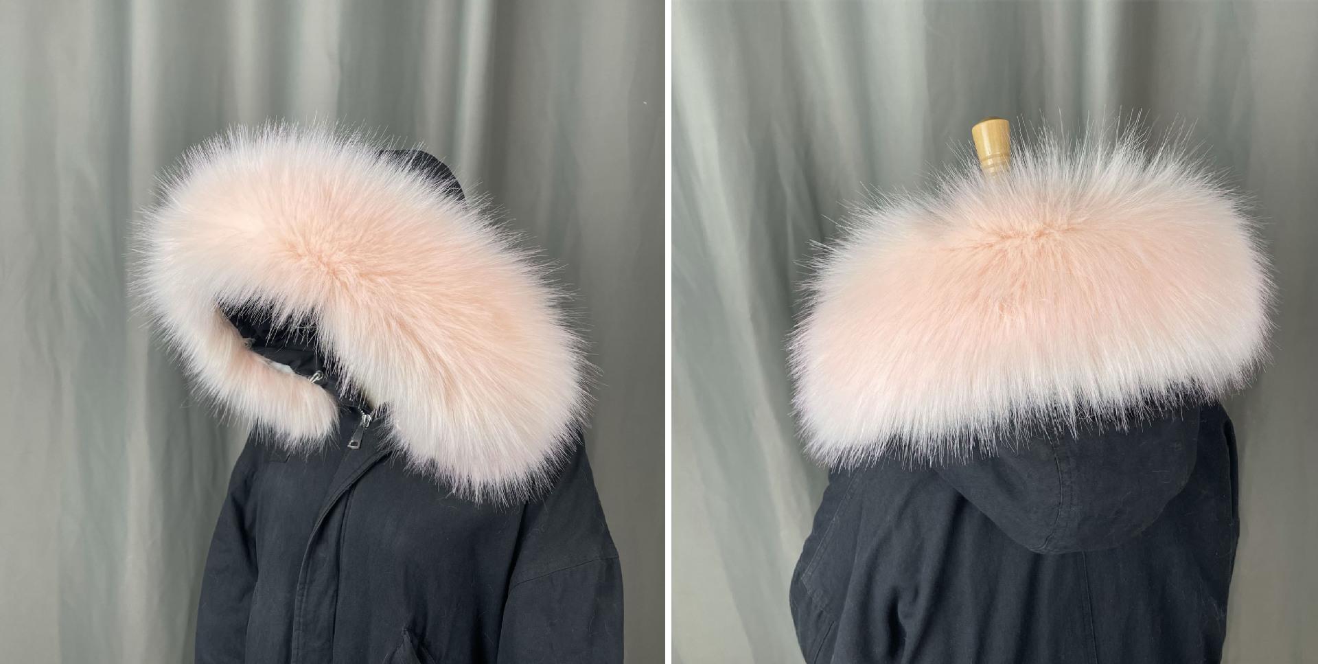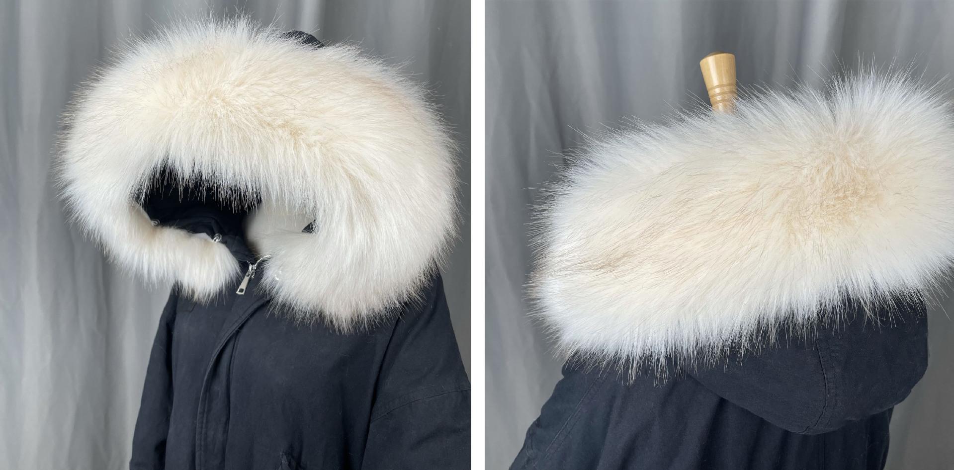 Debido a la compresión durante el transporte exprés, después de recibir el cuello de piel, puede usar un secador de pelo para soplar aire caliente a lo largo del pelaje durante unos minutos, y el cuello de piel volverá a su estado esponjoso natural.