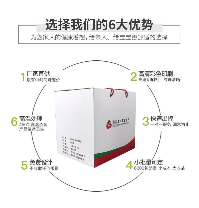 Fabricantes y mayoristas usan caja dura cuadrada cartón banco papel toalla comercial publicidad papel personalizado bolsa de papel papel
